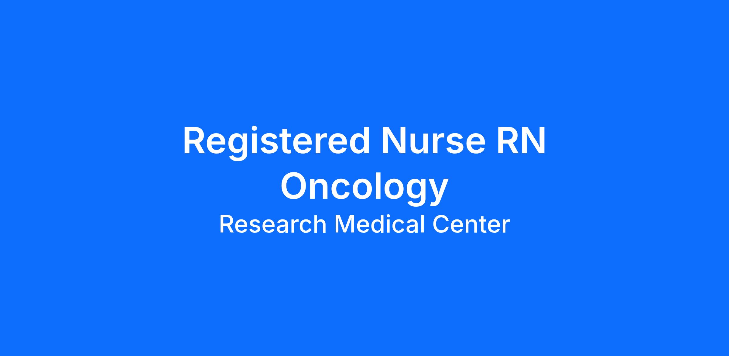 Are you looking for a place to deliver excellent care patients deserve? At Research Medical Center we support our colleagues in their positions. Join our Team as a(an) Registered Nurse RN Oncology and access programs to assist with every stage of your career.