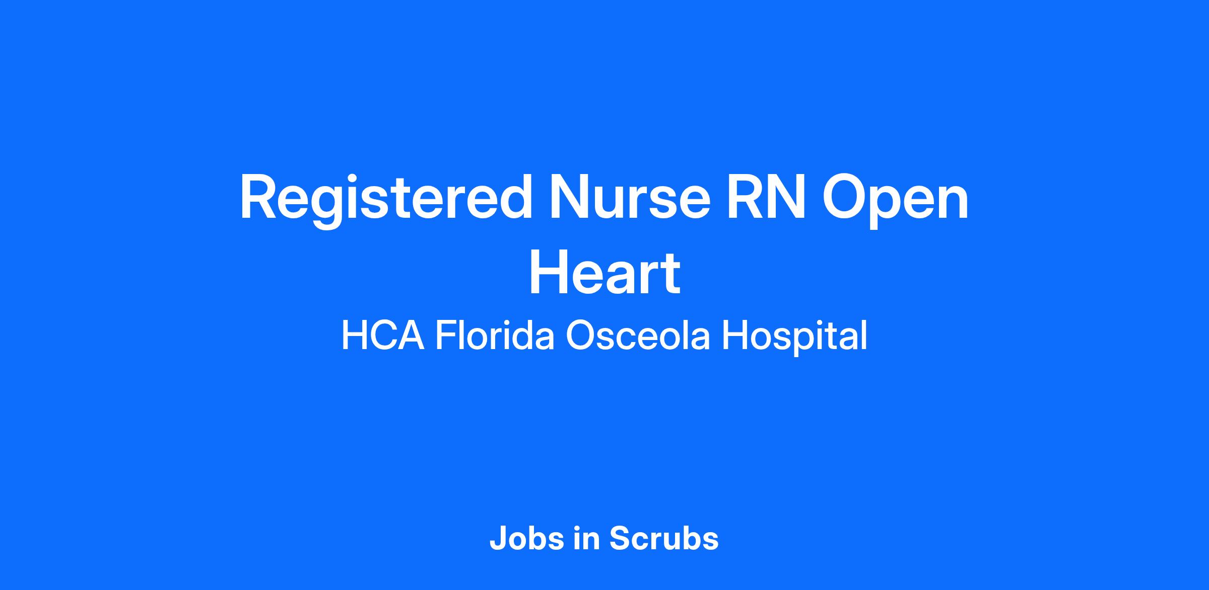 Are you passionate about the patient experience? At HCA Healthcare, we are committed to caring for patients with purpose and integrity. We care like family! Jump-start your career as a(an) Registered Nurse RN Open Heart today with HCA Florida Osceola Hospital.
