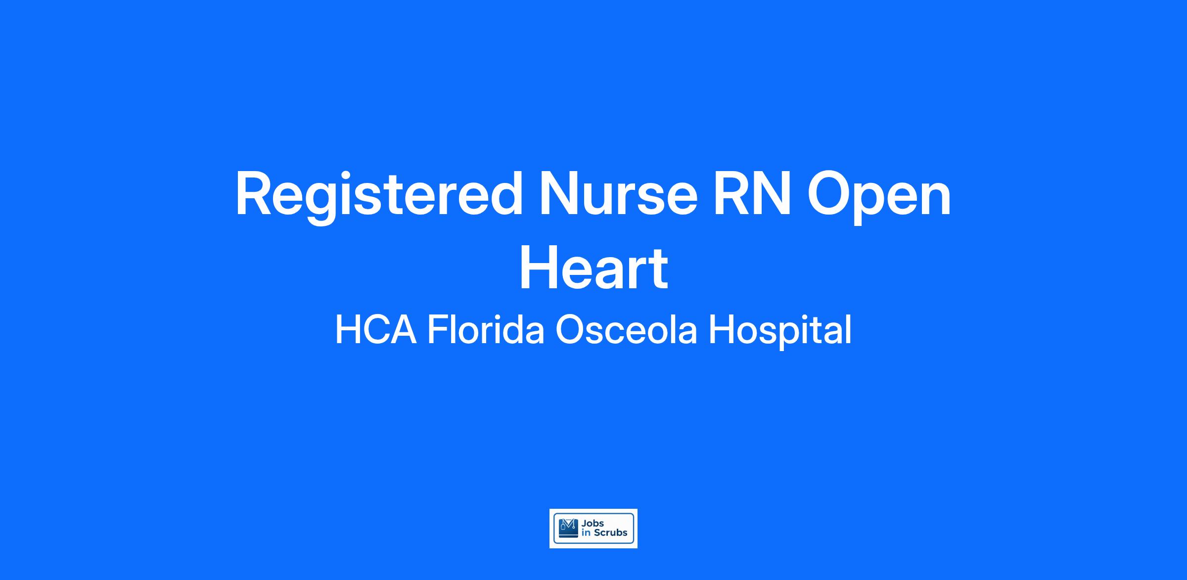 Are you passionate about the patient experience? At HCA Healthcare, we are committed to caring for patients with purpose and integrity. We care like family! Jump-start your career as a(an) Registered Nurse RN Open Heart today with HCA Florida Osceola Hospital.