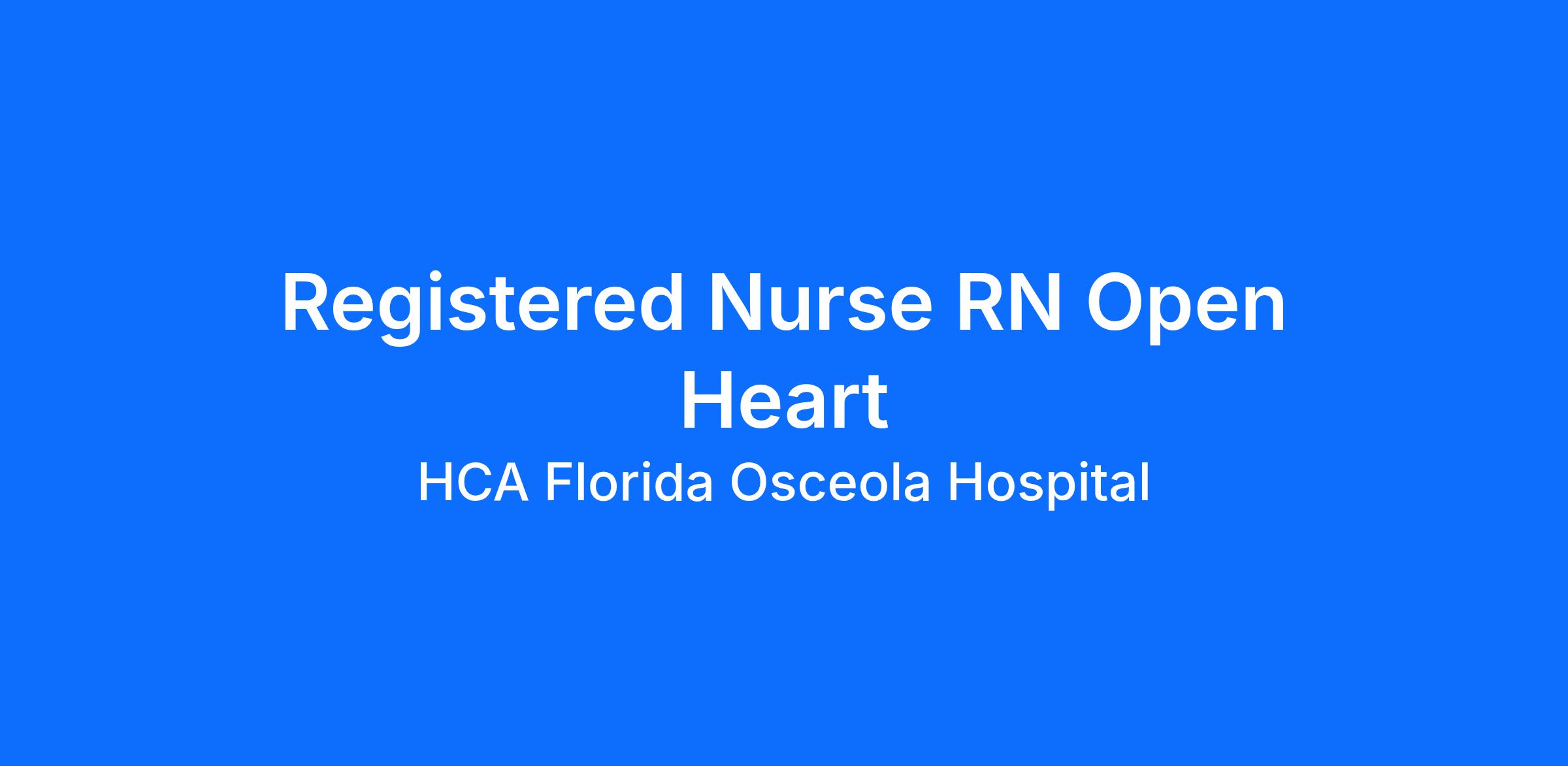 Are you passionate about the patient experience? At HCA Healthcare, we are committed to caring for patients with purpose and integrity. We care like family! Jump-start your career as a(an) Registered Nurse RN Open Heart today with HCA Florida Osceola Hospital.