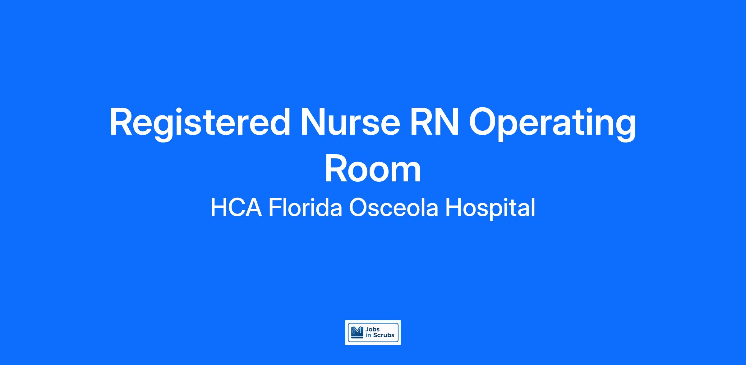Are you passionate about the patient experience? At HCA Healthcare, we are committed to caring for patients with purpose and integrity. We care like family! Jump-start your career as a(an) Registered Nurse RN Operating Room today with HCA Florida Osceola Hospital.