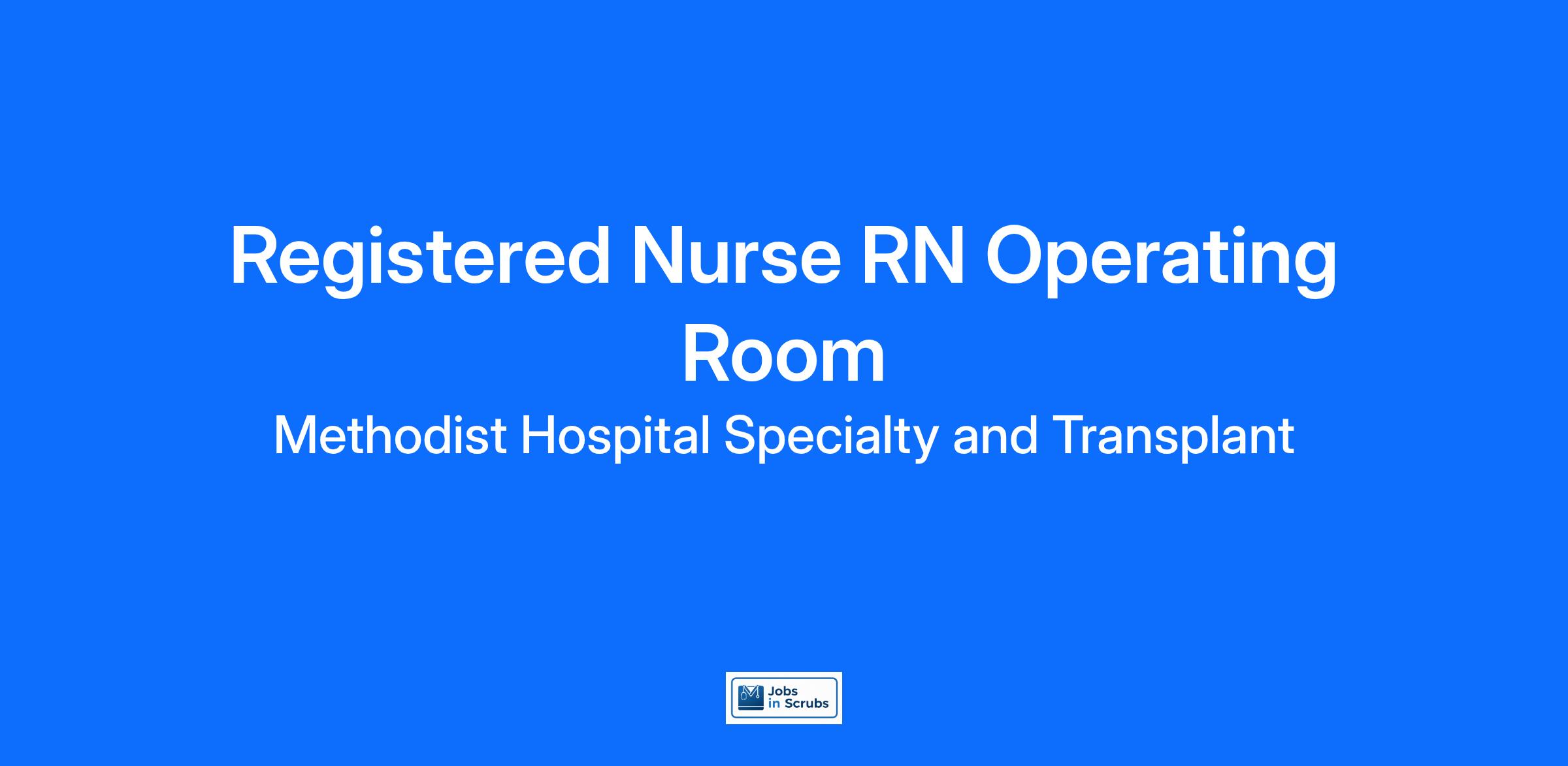 Do you want to be appreciated daily? Our nurses are celebrated for being on the front line, empathetic for patients. At Methodist Hospital Specialty and Transplant our nurses set us apart from any other healthcare provider. We are seeking a(an) Registered Nurse RN Operating Room to join our healthcare family.