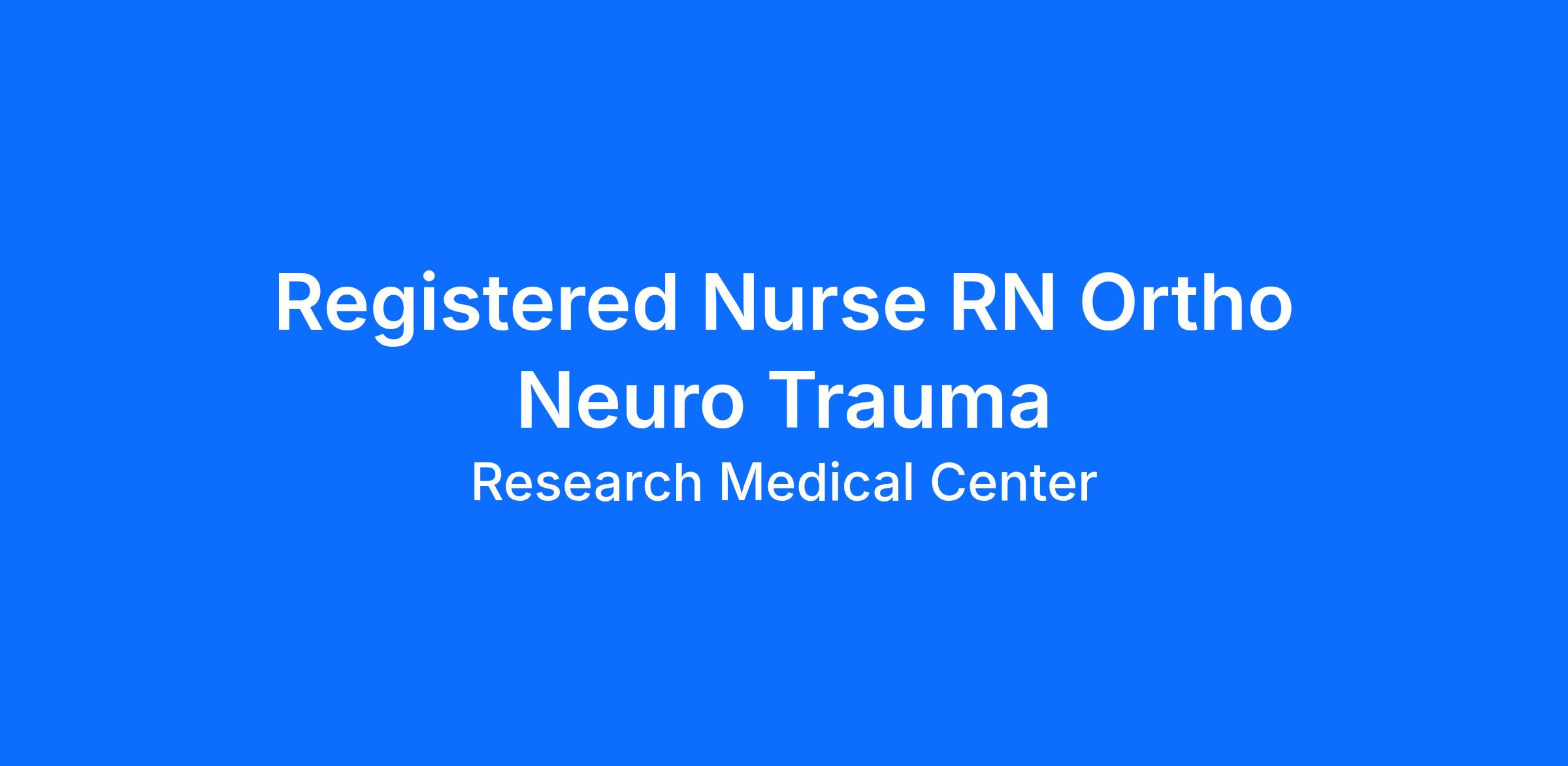 Do you want to join an organization that invests in you as a(an) Registered Nurse RN Ortho Neuro Trauma? At Research Medical Center, you come first. HCA Healthcare has committed up to $300 million in programs to support our incredible team members over the course of three years.