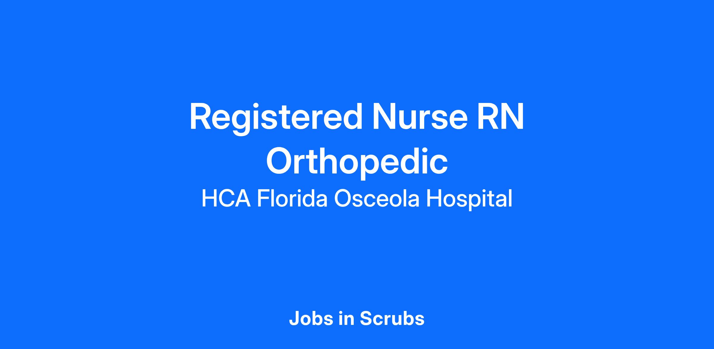 Are you passionate about the patient experience? At HCA Healthcare, we are committed to caring for patients with purpose and integrity. We care like family! Jump-start your career as a(an) Registered Nurse RN Orthopedic today with HCA Florida Osceola Hospital.