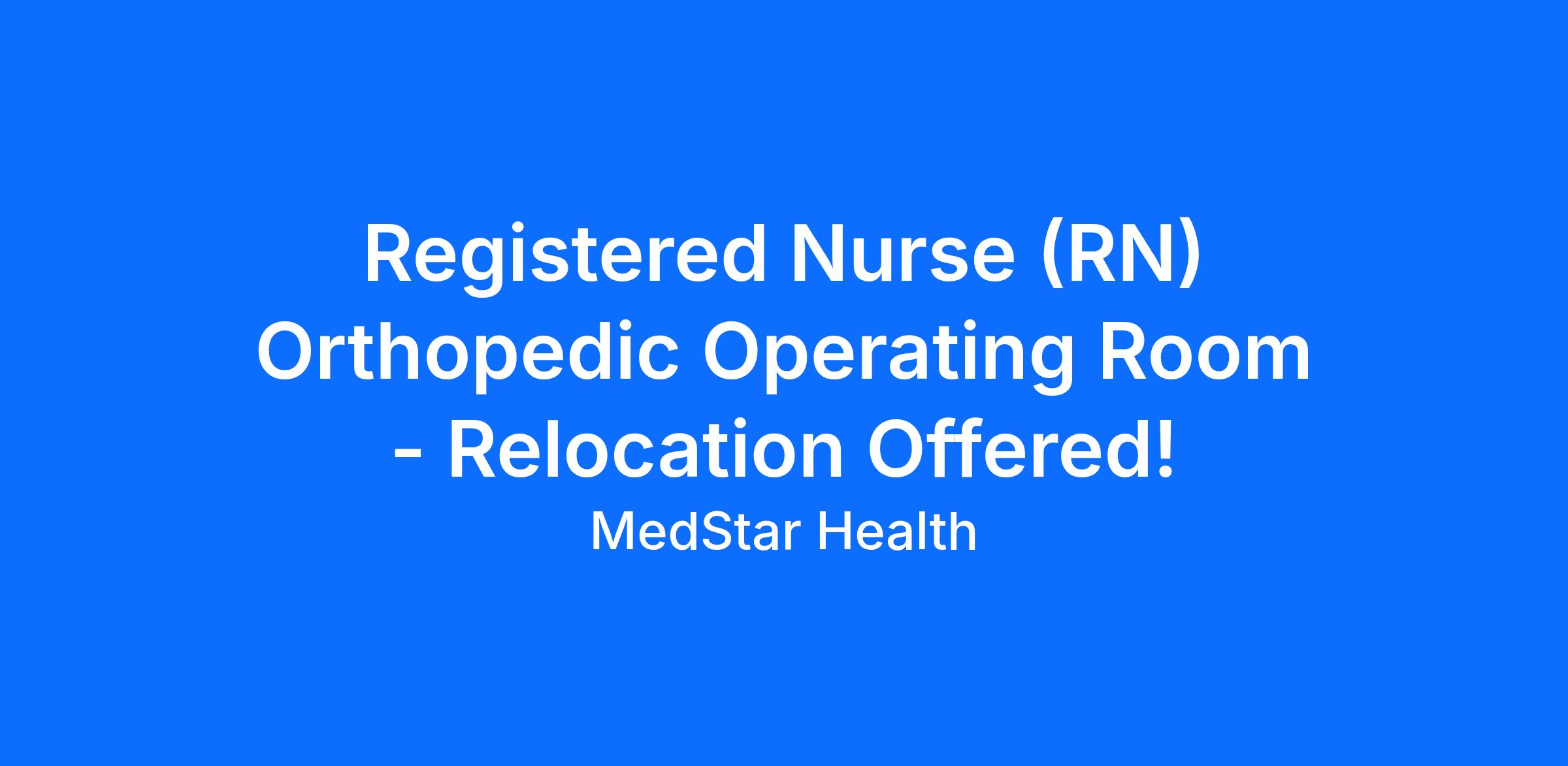 - 1 year of RN experience required; 2 years of Operating Room (OR) RN experience strongly preferred; Orthopedic OR experience a plus.