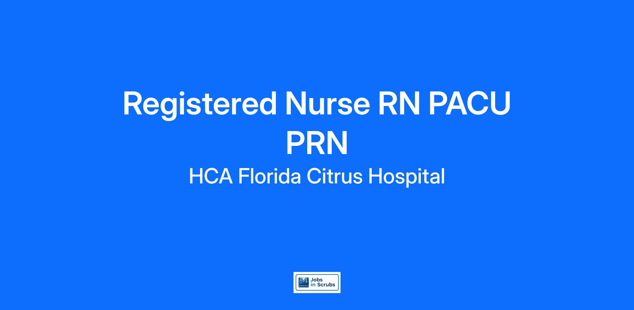 Do you have the career opportunities as a Registered Nurse RN PACU PRN you want in your current role? We invest in what matters most to nurses like you – at home, at work, and at every stage in your career. We have an exciting opportunity for you to join HCA Florida Citrus Hospital which is a part of the nation’s leading provider of healthcare services, HCA Healthcare.