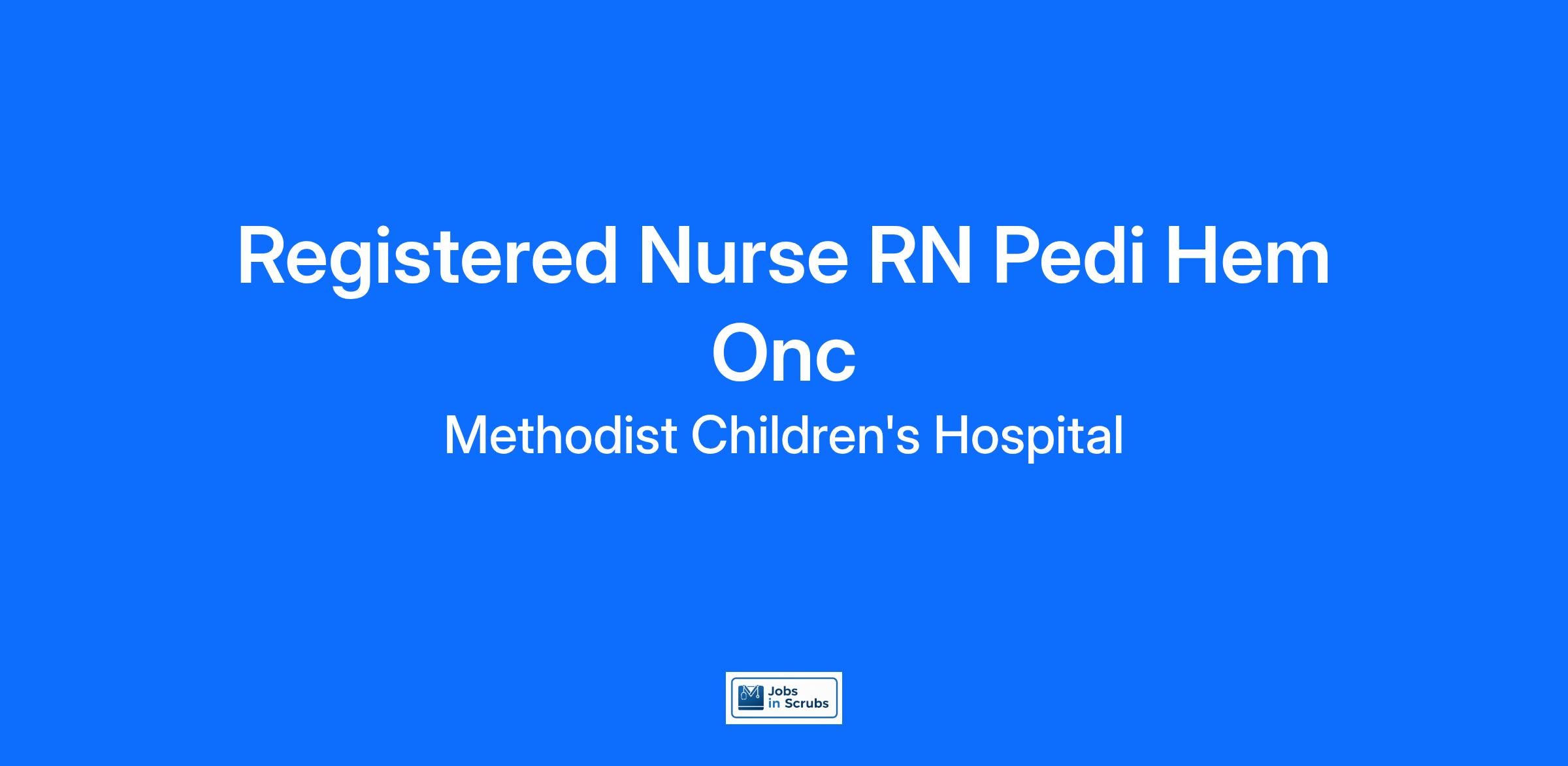 Are you looking for a place to deliver excellent care patients deserve? At Methodist Children's Hospital we support our colleagues in their positions. Join our Team as a(an) Registered Nurse RN Pedi Hem Onc and access programs to assist with every stage of your career.