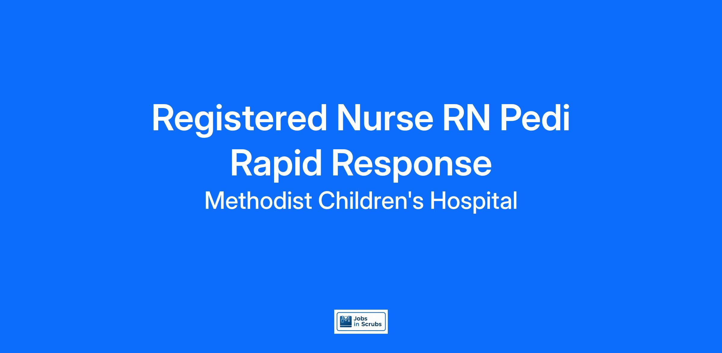 Are you looking for a place to deliver excellent care patients deserve? At Methodist Children's Hospital we support our colleagues in their positions. Join our Team as a(an) Registered Nurse RN Pedi Rapid Response and access programs to assist with every stage of your career.