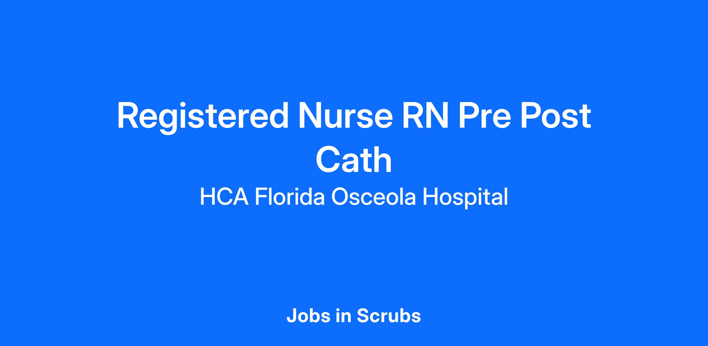 Are you passionate about the patient experience? At HCA Healthcare, we are committed to caring for patients with purpose and integrity. We care like family! Jump-start your career as a(an) Registered Nurse RN Pre Post Cath today with HCA Florida Osceola Hospital.