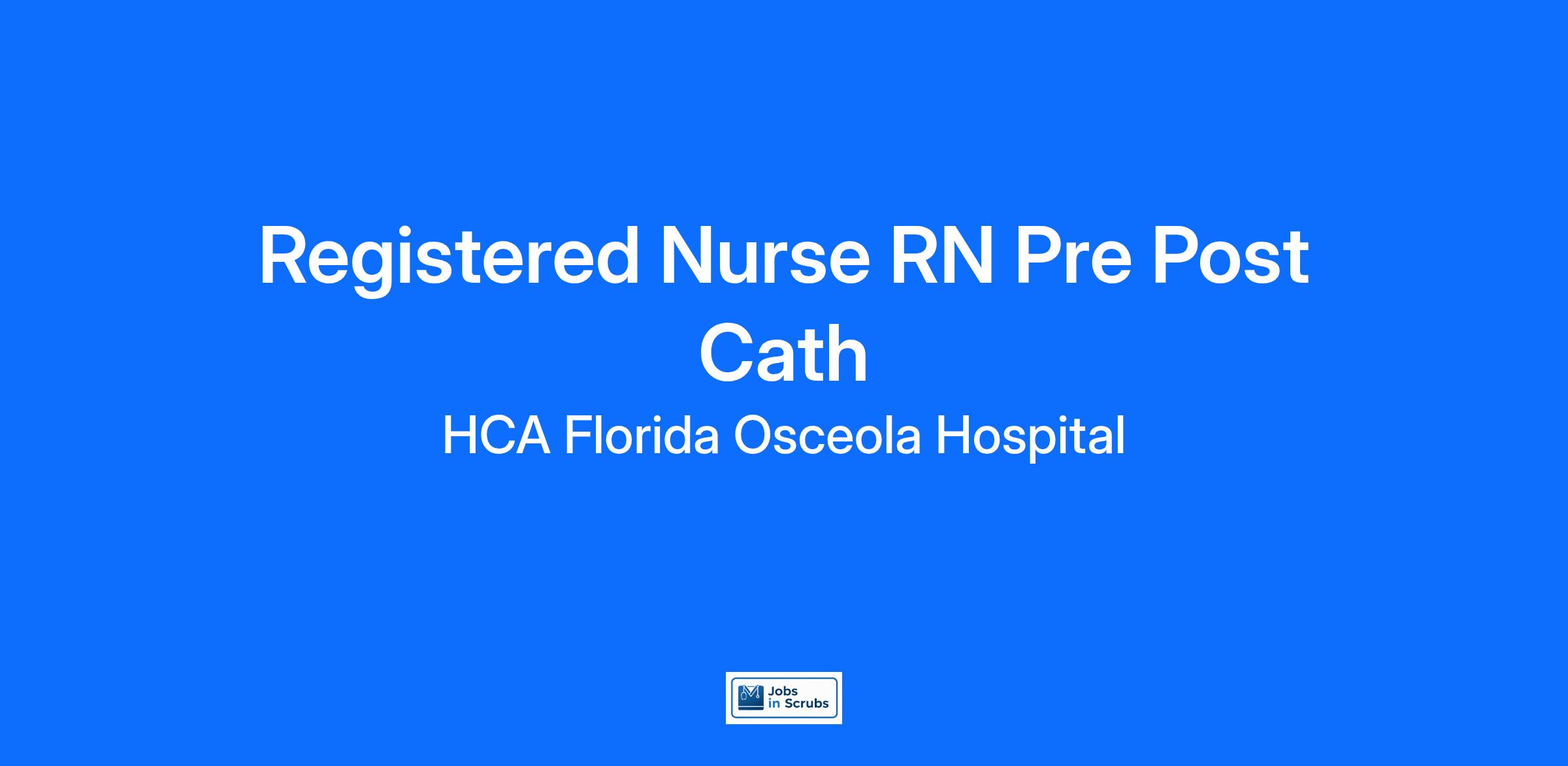 Are you passionate about the patient experience? At HCA Healthcare, we are committed to caring for patients with purpose and integrity. We care like family! Jump-start your career as a(an) Registered Nurse RN Pre Post Cath today with HCA Florida Osceola Hospital.