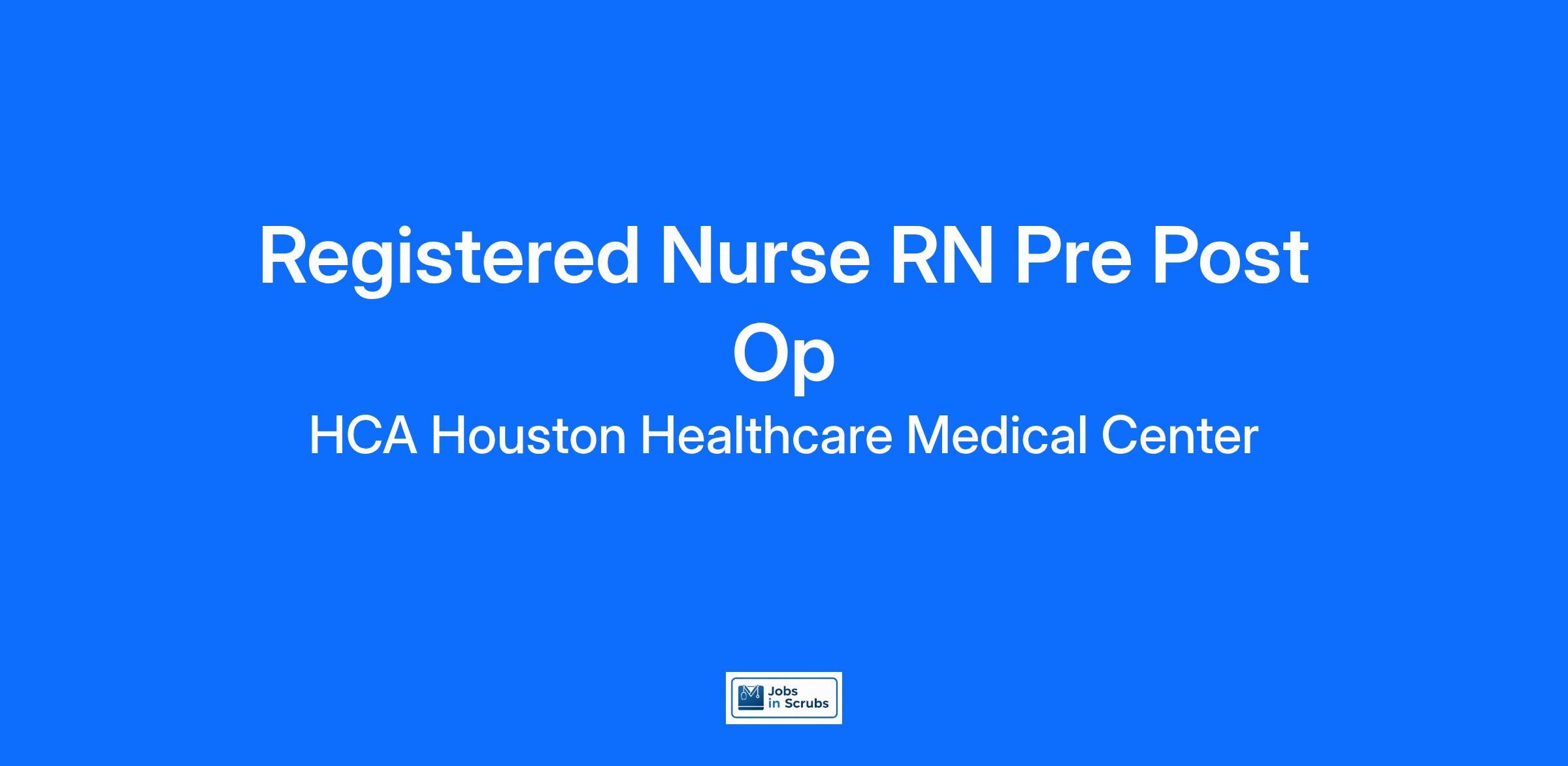 Do you want to be appreciated daily? Our nurses are celebrated for being on the front line, empathetic for patients. At HCA Houston Healthcare Medical Center our nurses set us apart from any other healthcare provider. We are seeking a Registered Nurse RN Pre Post Op to join our healthcare family.
