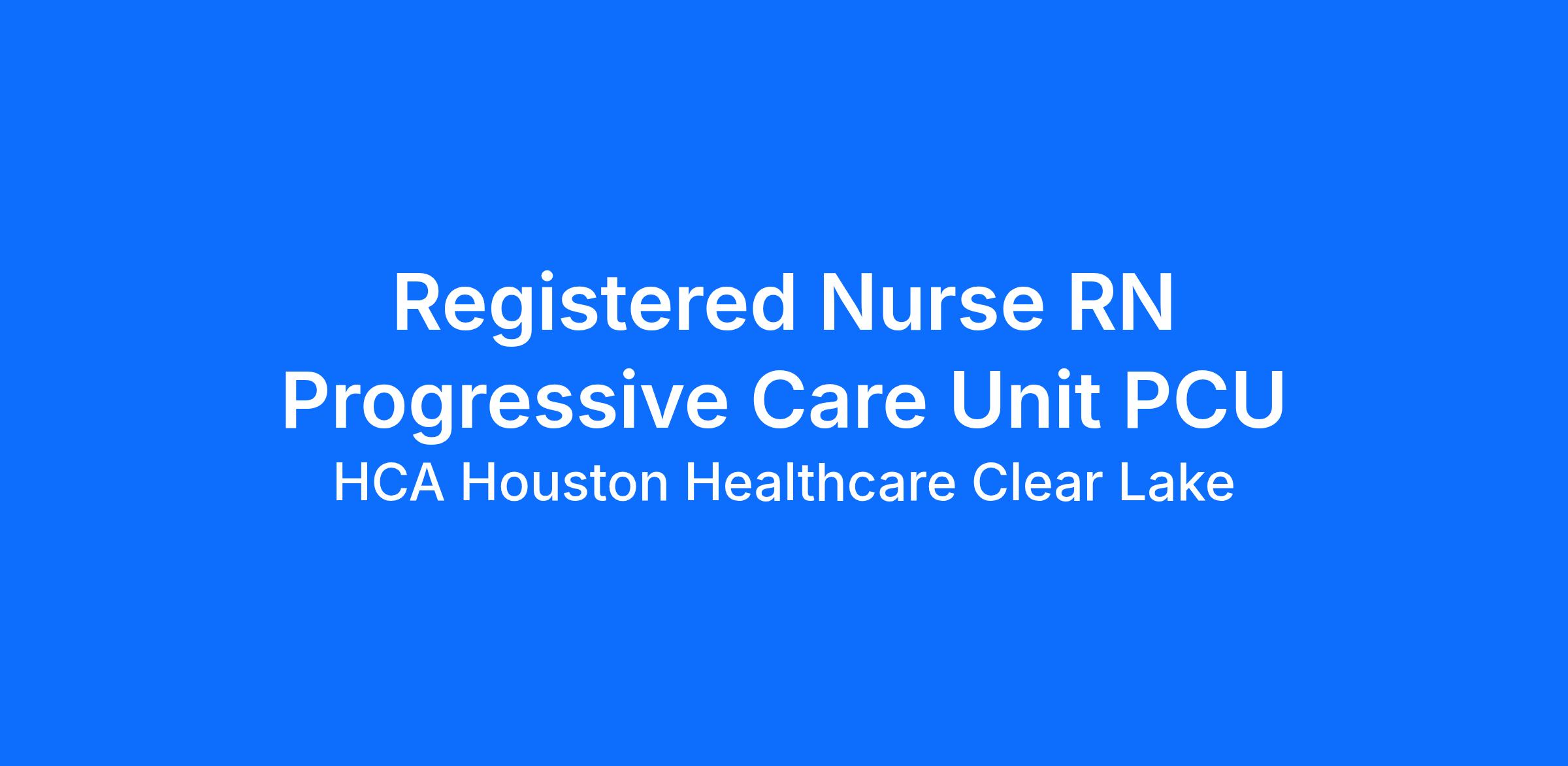 Are you looking for a place to deliver excellent care patients deserve? At HCA Houston Healthcare Clear Lake we support our colleagues in their positions. Join our Team as a(an) Registered Nurse RN Progressive Care Unit PCU and access programs to assist with every stage of your career.