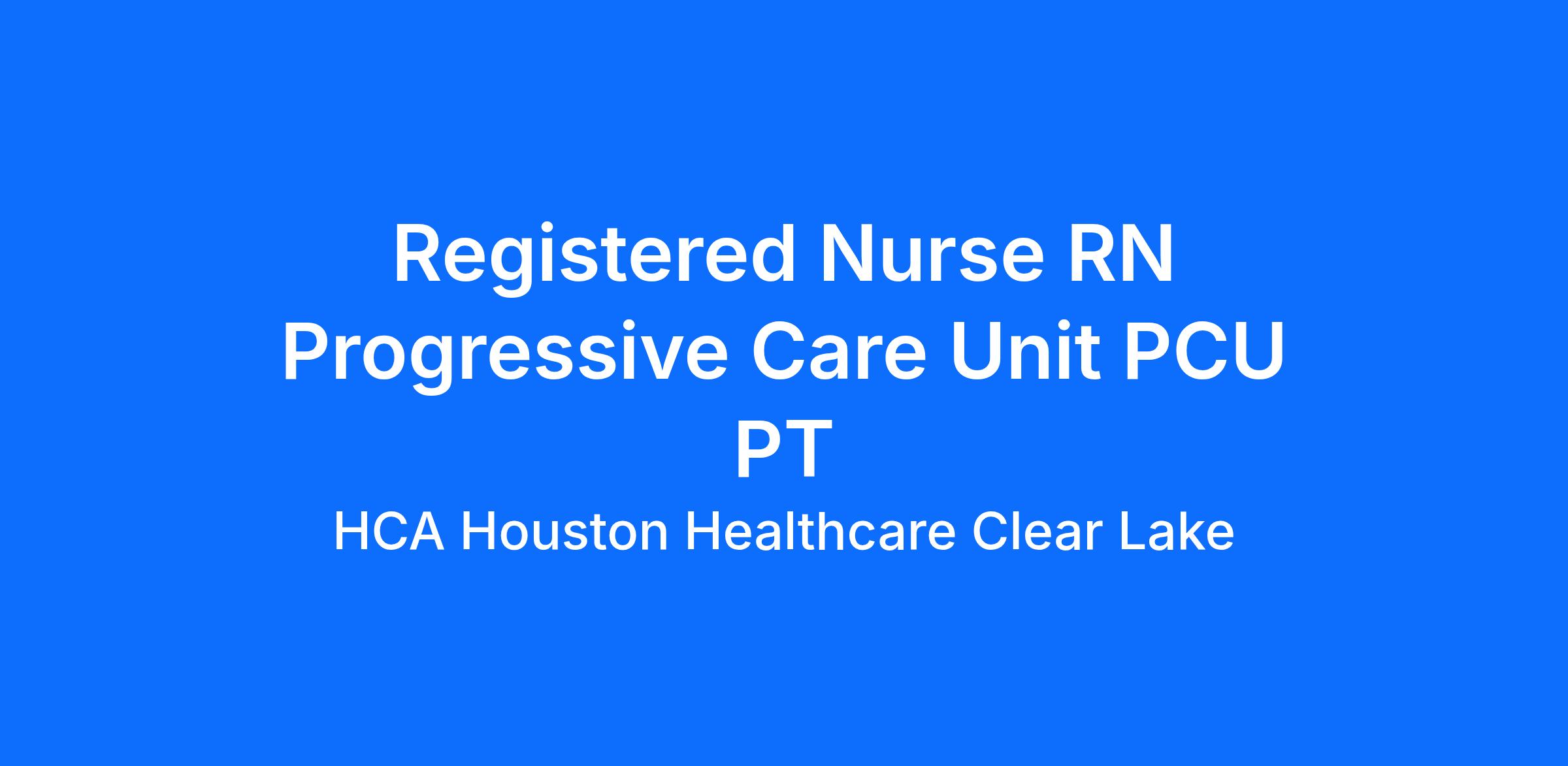 Are you looking for a place to deliver excellent care patients deserve? At HCA Houston Healthcare Clear Lake we support our colleagues in their positions. Join our Team as a(an) Registered Nurse RN Progressive Care Unit PCU and access programs to assist with every stage of your career.