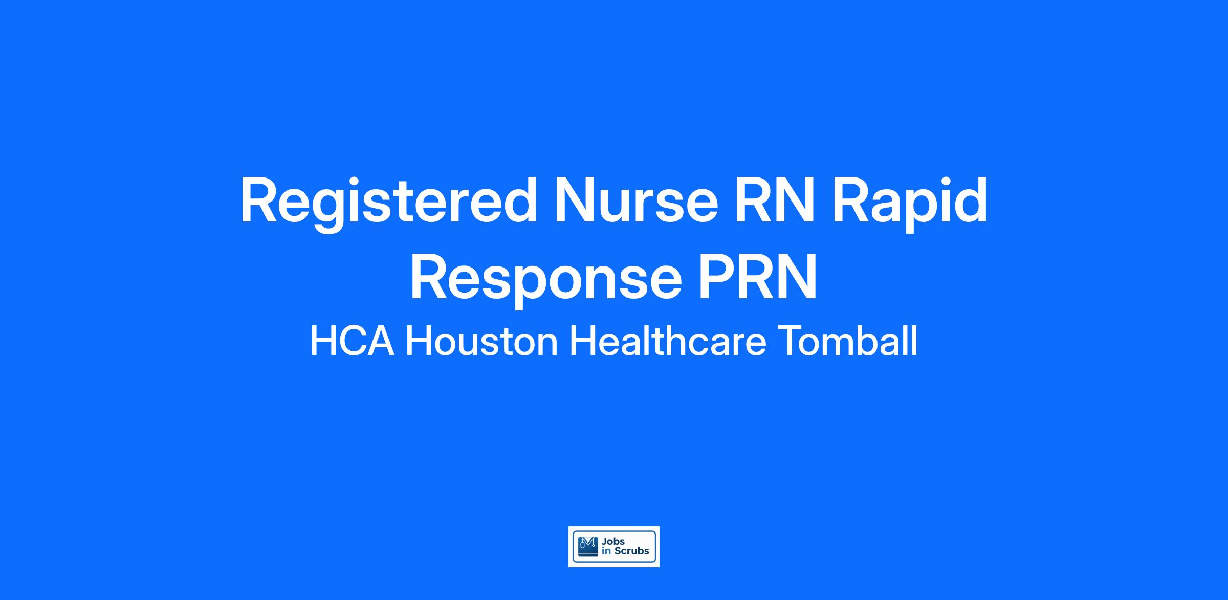 Do you want to be appreciated daily? Our nurses are celebrated for being on the front line, empathetic for patients. At HCA Houston Healthcare Tomball our nurses set us apart from any other healthcare provider. We are seeking a(an) Registered Nurse RN Rapid Response PRN to join our healthcare family.