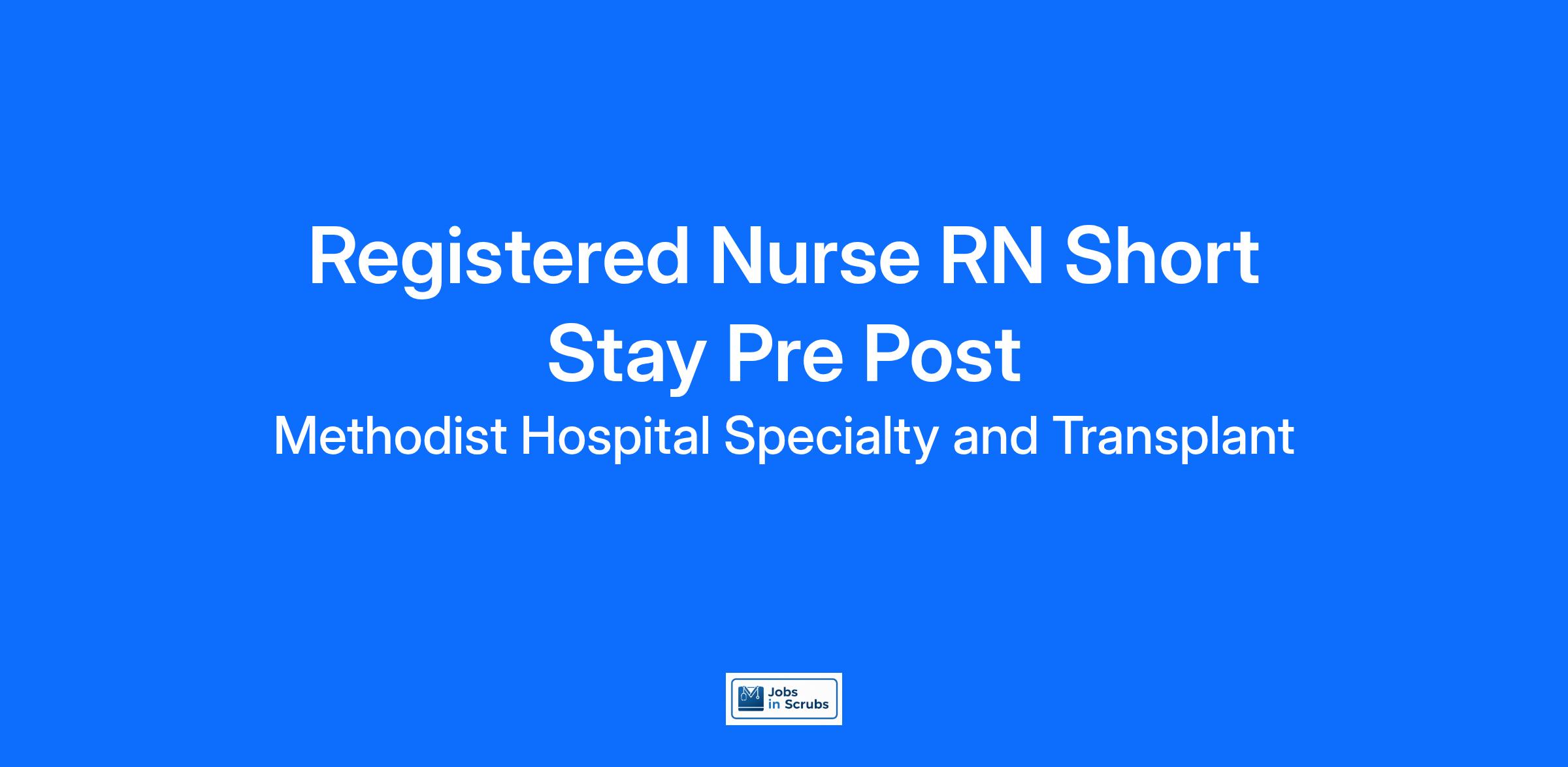 Do you want to be appreciated daily? Our nurses are celebrated for being on the front line, empathetic for patients. At Methodist Hospital Specialty and Transplant our nurses set us apart from any other healthcare provider. We are seeking a(an) Registered Nurse RN Short Stay to join our healthcare family.