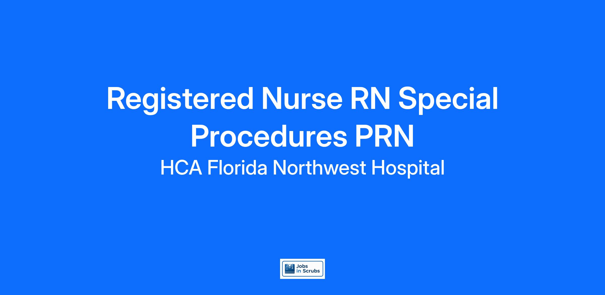 Do you have the PRN career opportunities as a(an) Registered Nurse RN Special Procedures PRN you want with your current employer? We have an exciting opportunity for you to join HCA Florida Northwest Hospital which is part of the nation's leading provider of healthcare services, HCA Healthcare.