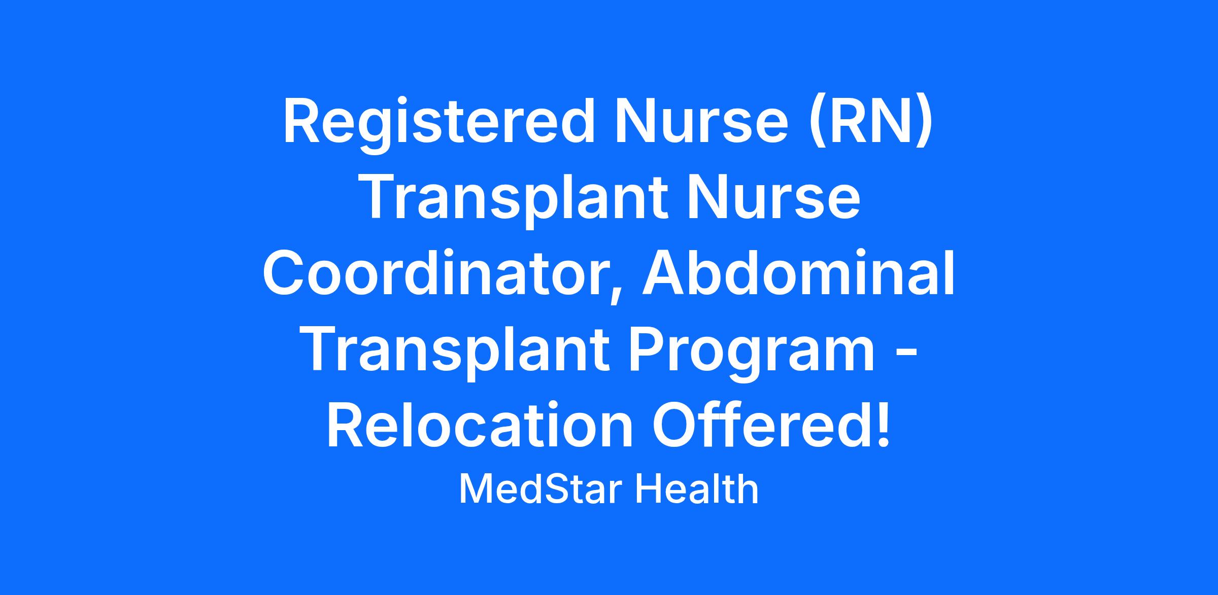 The Transplant Nurse Coordinator provides patient care for transplant patients following established standards and practices. Functions to advance the clinical mission and goals of the MedStar Georgetown Transplant Institute through collaborative relationships within the Medical Center.