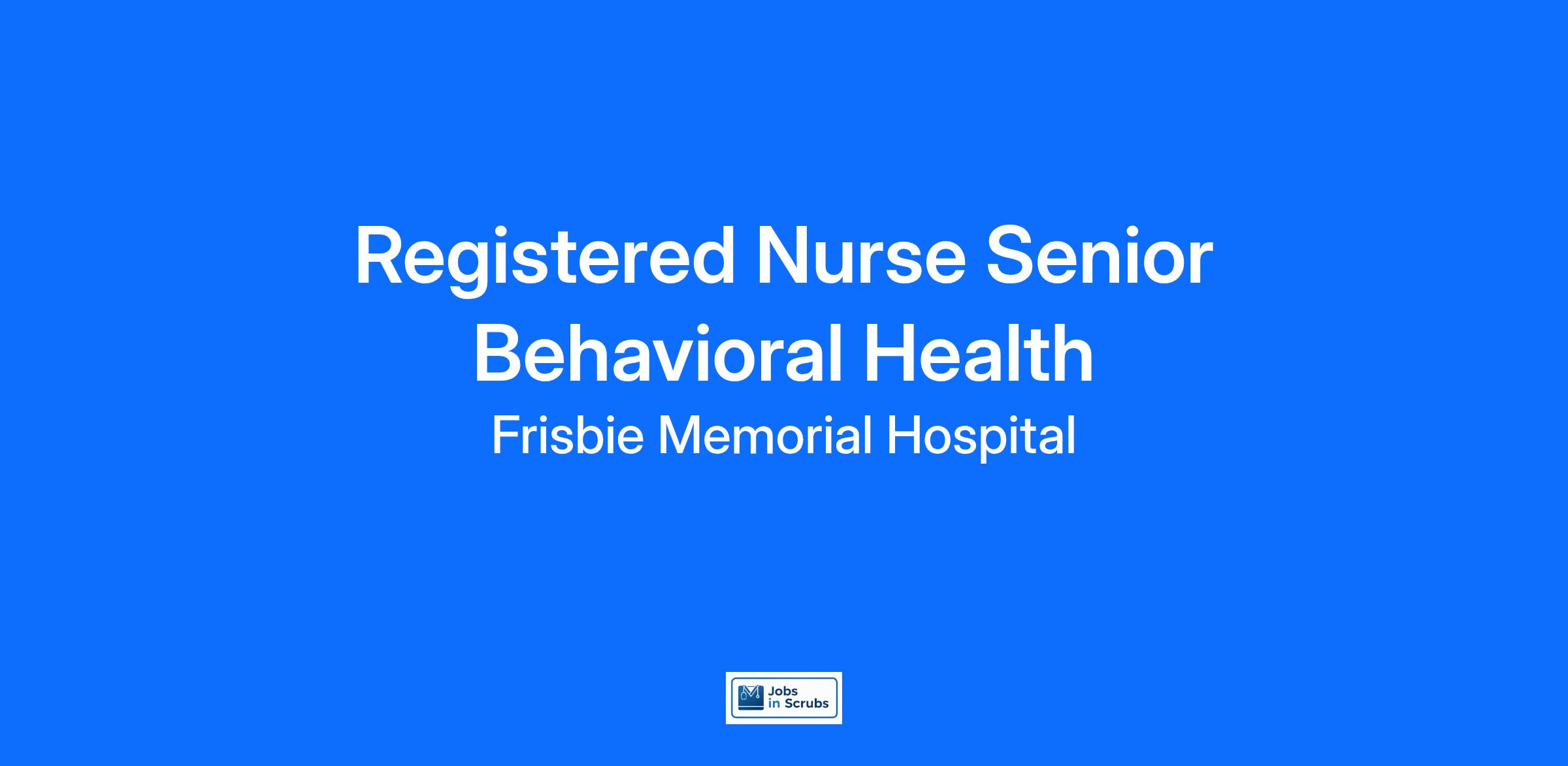Frisbie Memorial Hospital is committed to investing in the latest technology enabling nurses to work more efficiently. Are you passionate about delivering patient-centered care? Submit your application for Registered Nurse Senior Behavioral Health position and spend more time at the bedside with the patient.