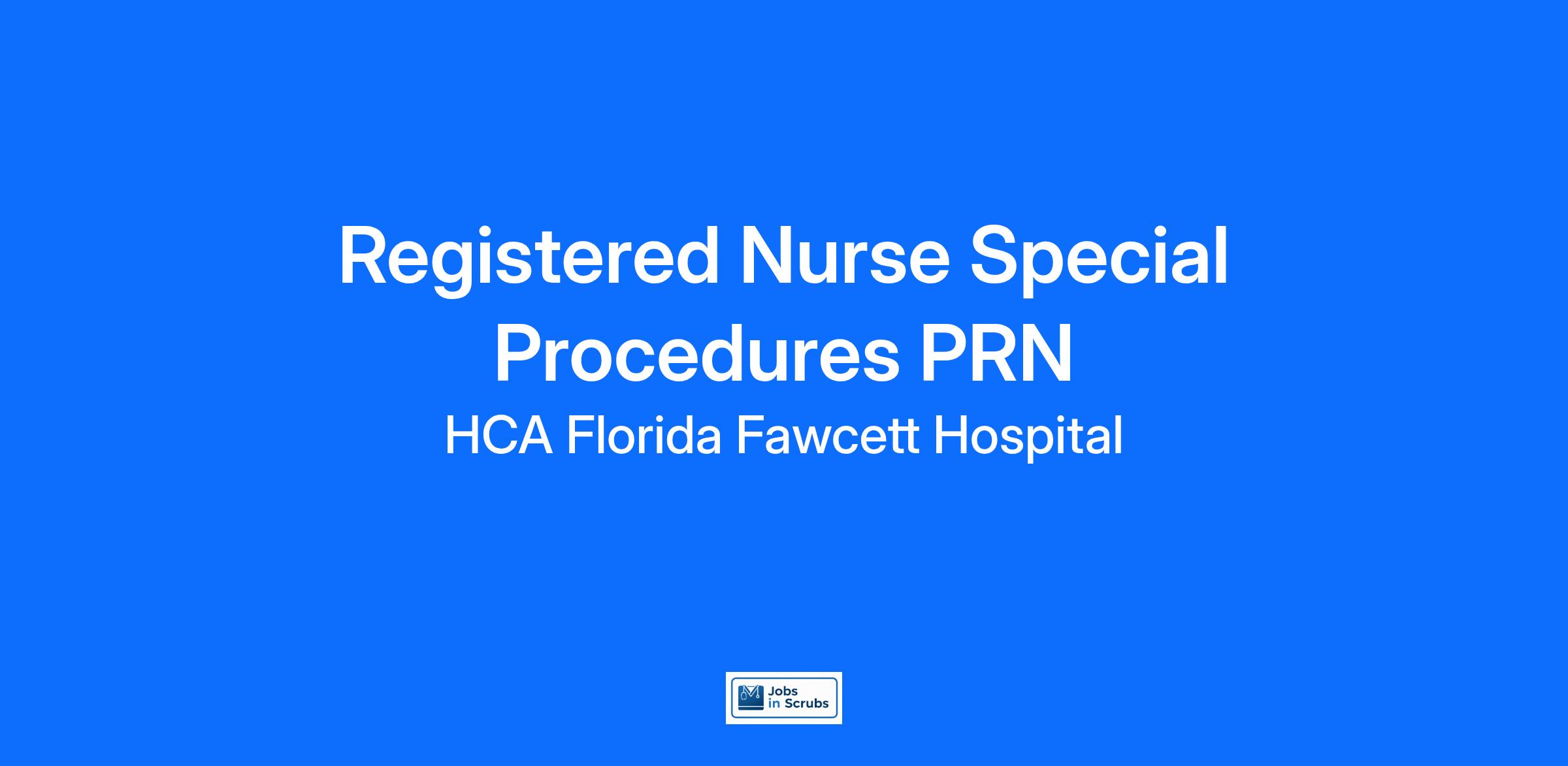 Do you want to be appreciated daily? Our nurses are celebrated for being on the front line, empathetic for patients. At HCA Florida Fawcett Hospital our nurses set us apart from any other healthcare provider. We are seeking a(an) Registered Nurse Special Procedures to join our healthcare family.