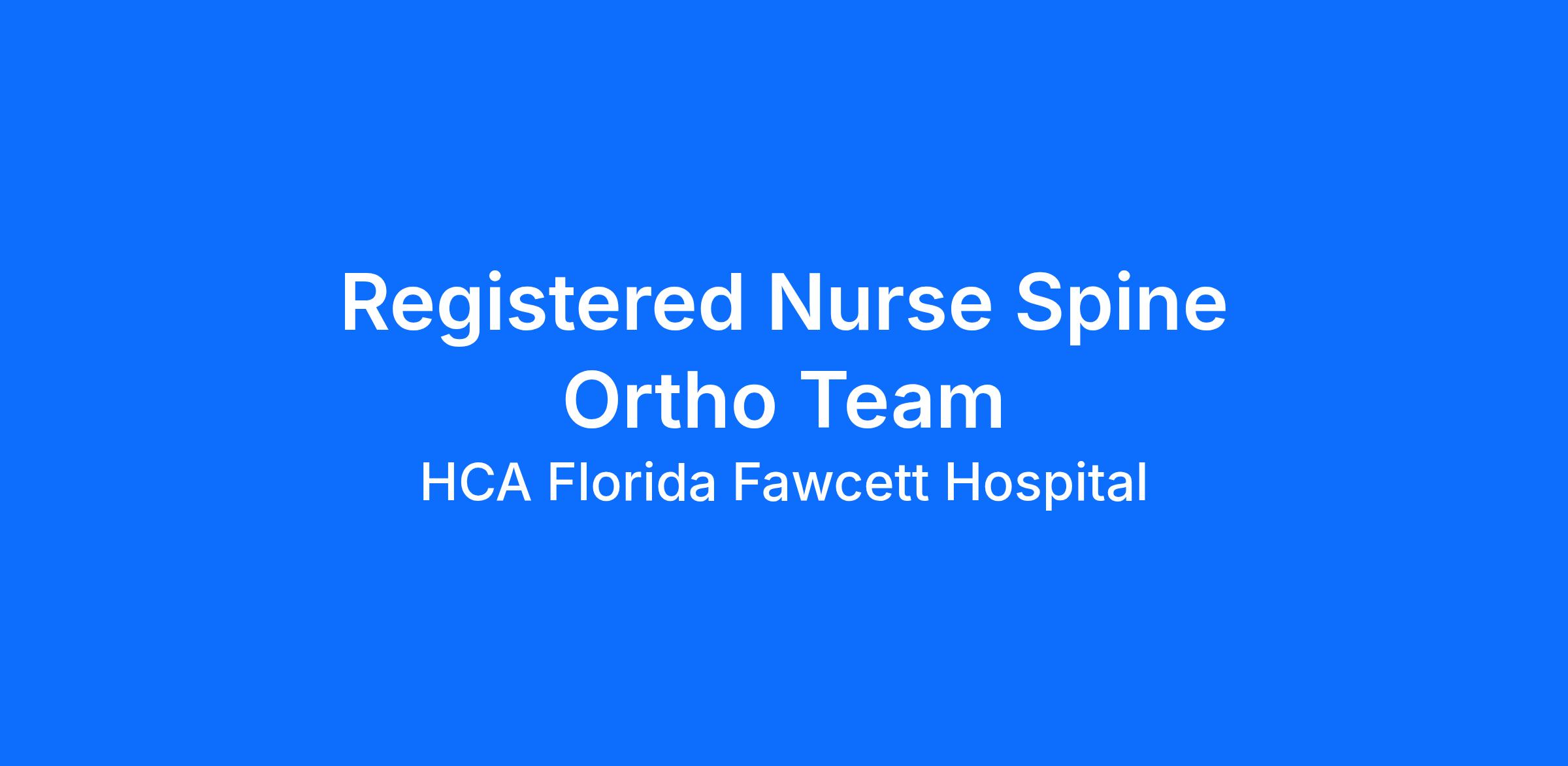 Do you currently have an opportunity to make a real impact with your work? With over 2,000 sites of care and serving over 31.2 million patient interactions every year, nurses at HCA Florida Fawcett Hospital have the opportunity to make a real impact. As a(an) Registered Nurse Spine Ortho Team you can be a part of change.