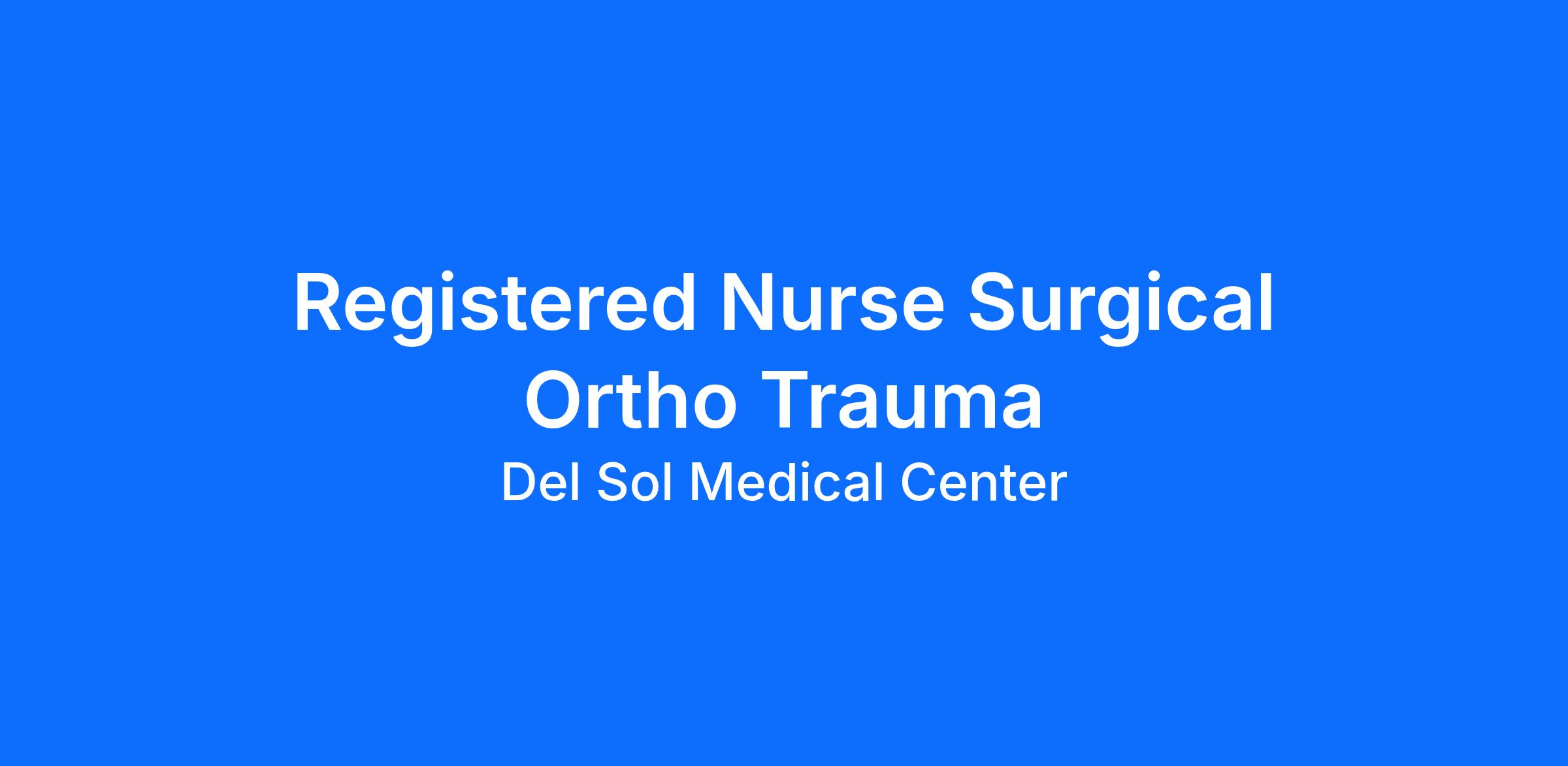 Del Sol Medical Center is committed to investing in the latest technology enabling nurses to work more efficiently. Are you passionate about delivering patient-centered care? Submit your application for Registered Nurse Surgical Ortho Trauma position and spend more time at the bedside with the patient.