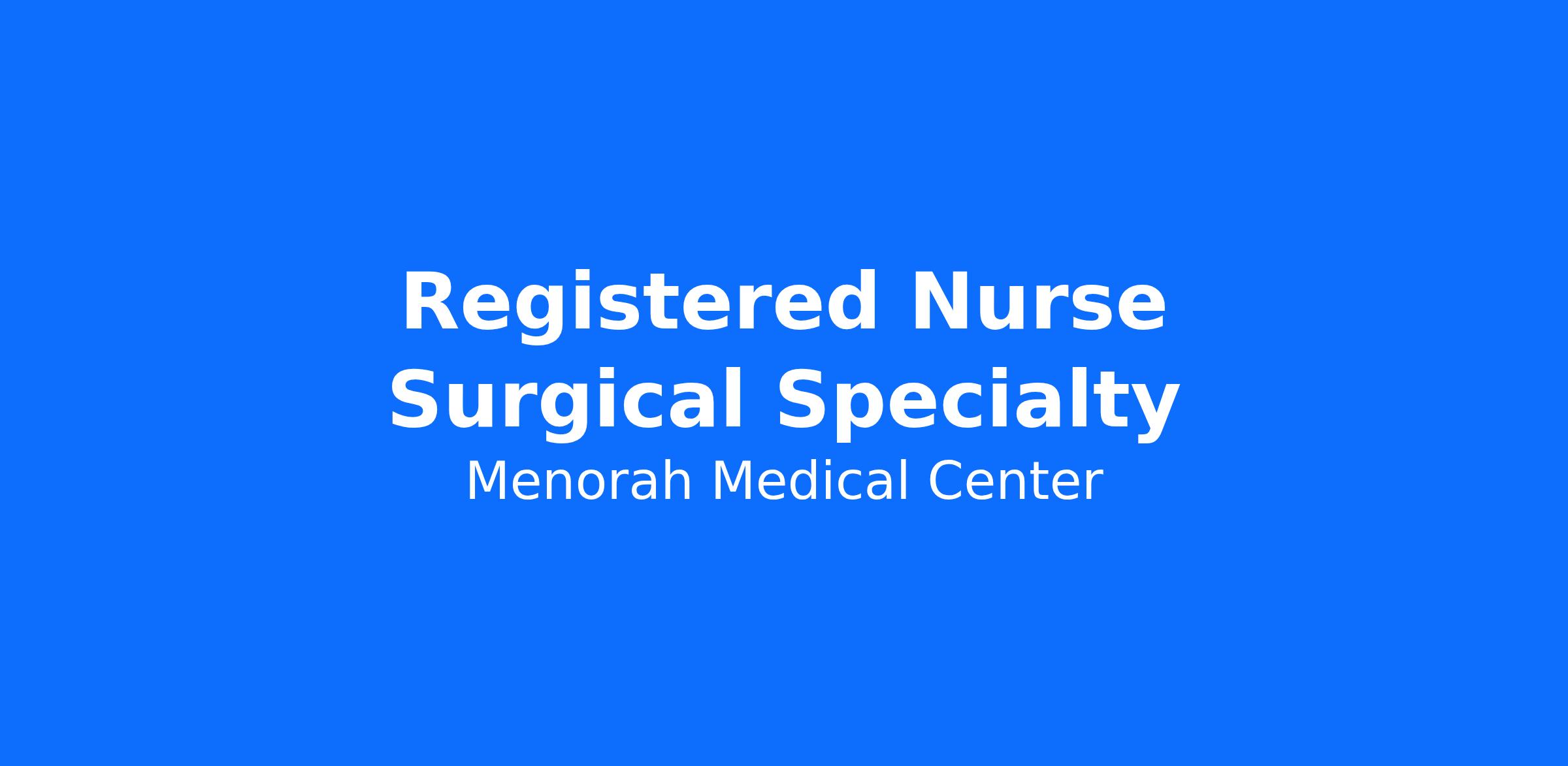 Do you currently have an opportunity to make a real impact with your work? With over 2,000 sites of care and serving over 31.2 million patient interactions every year, nurses at Menorah Medical Center have the opportunity to make a real impact. As a Registered Nurse RN Surgical Specialty you can be a part of change.