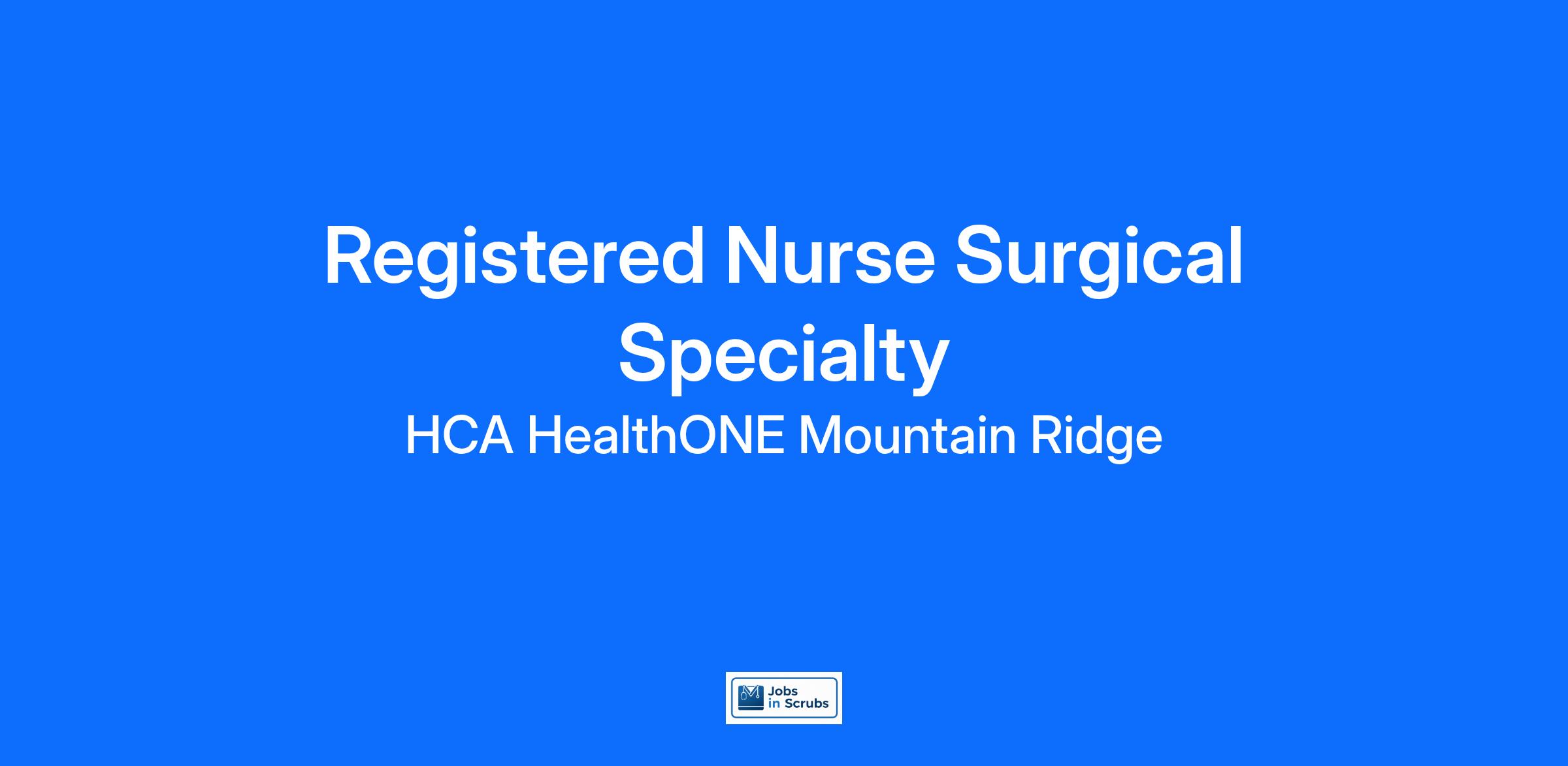 Are you looking for a place to deliver excellent care patients deserve? At HCA HealthONE Mountain Ridge we support our colleagues in their positions. Join our Team as a(an) Registered Nurse Surgical Specialty and access programs to assist with every stage of your career.