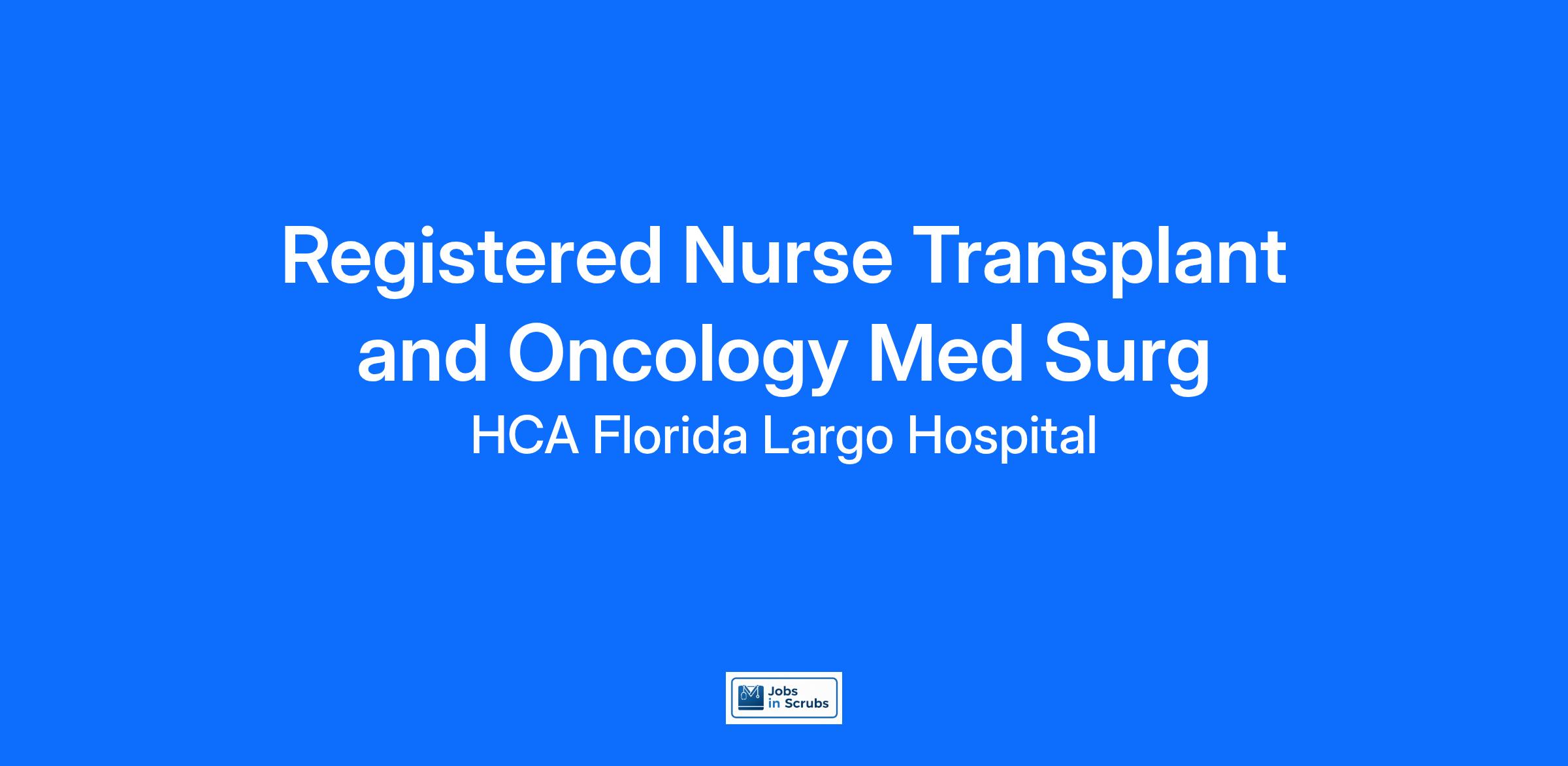 Do you have the career opportunities as a Registered Nurse Transplant and Oncology Med Surg you want in your current role? We invest in what matters most to nurses like you – at home, at work, and at every stage in your career. We have an exciting opportunity for you to join HCA Florida Largo Hospital which is a part of the nation’s leading provider of healthcare services, HCA Healthcare.