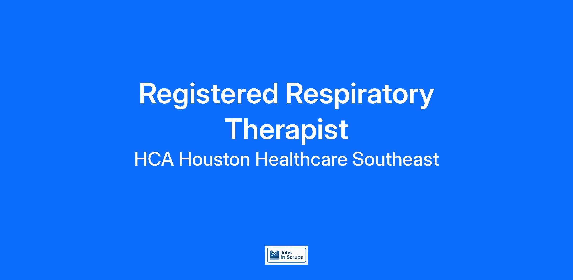 Experience the HCA Healthcare difference where colleagues are trusted, valued members of our healthcare team. Grow your career with an organization committed to delivering respectful, compassionate care, and where the unique and intrinsic worth of each individual is recognized. Submit your application for our Registered Respiratory Therapist opening with HCA Houston Healthcare Southeast today and find out what it truly means to be a part of the HCA Healthcare team.