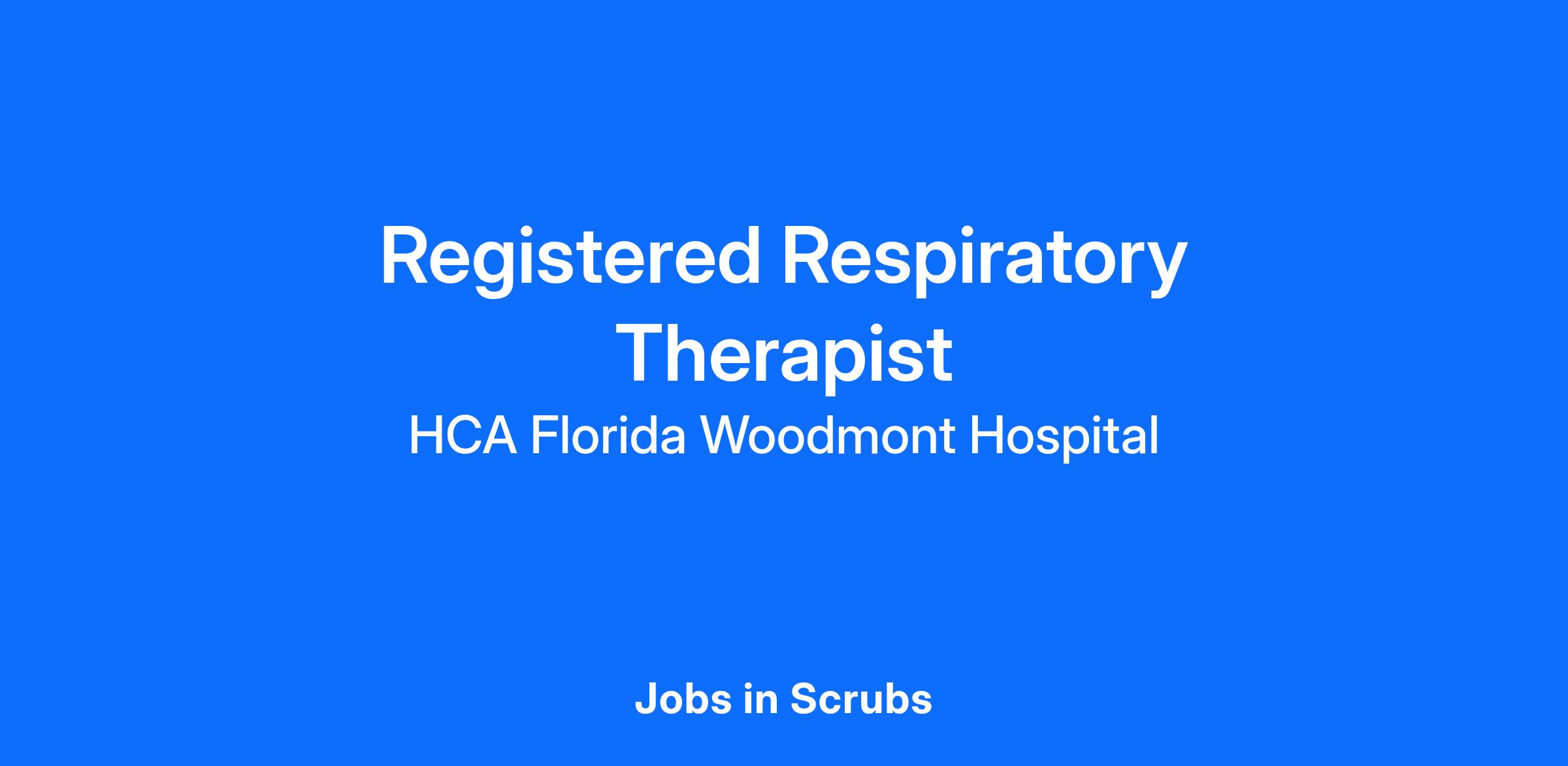 Experience the HCA Healthcare difference where colleagues are trusted, valued members of our healthcare team. Grow your career with an organization committed to delivering respectful, compassionate care, and where the unique and intrinsic worth of each individual is recognized. Submit your application for the opportunity below:Registered Respiratory TherapistHCA Florida Woodmont Hospital