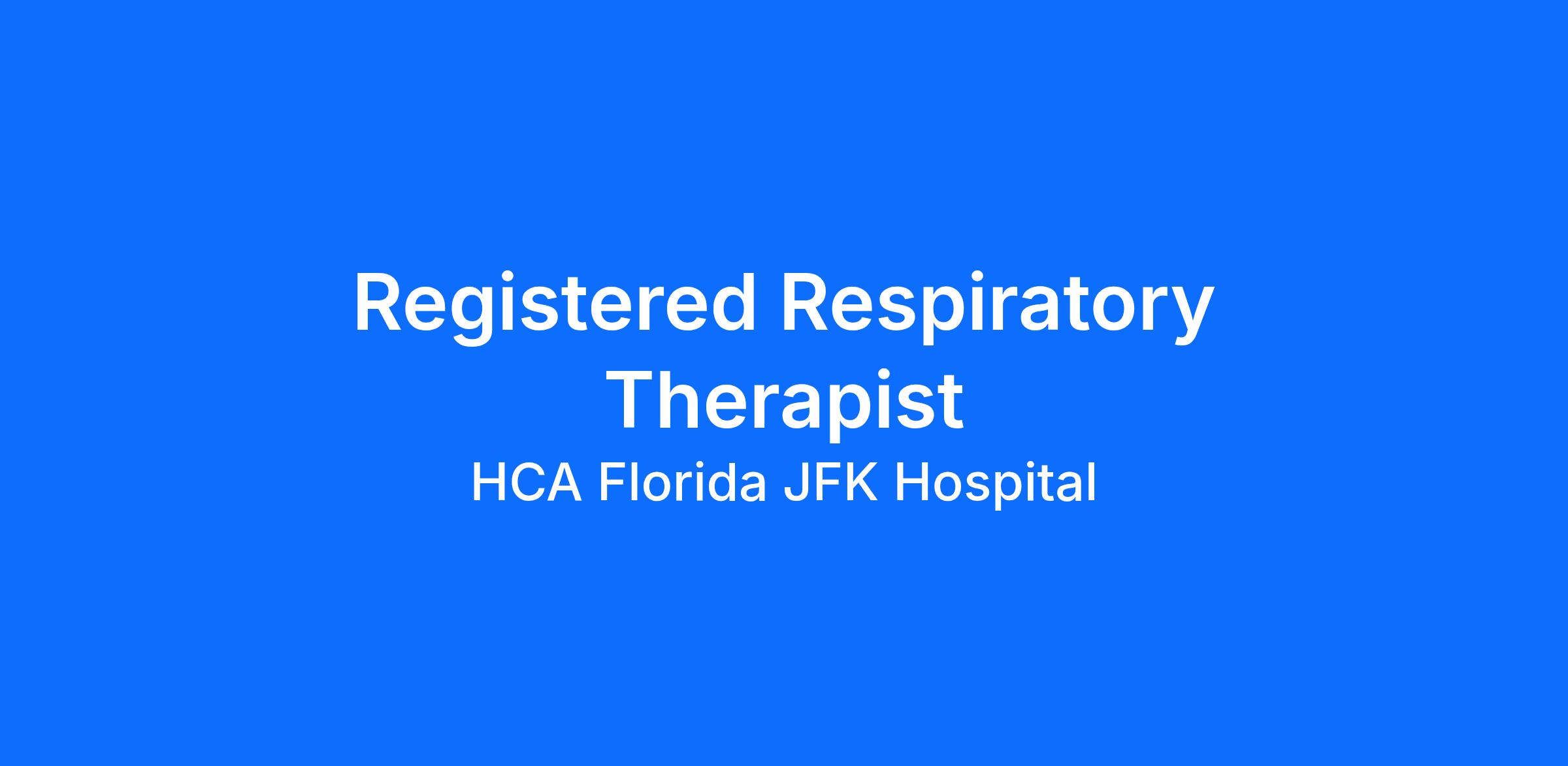 Do you have the career opportunities as a(an) Registered Respiratory Therapist Full Time Days you want with your current employer? We have an exciting opportunity for you to join HCA Florida JFK Hospital which is part of the nation's leading provider of healthcare services, HCA Healthcare.