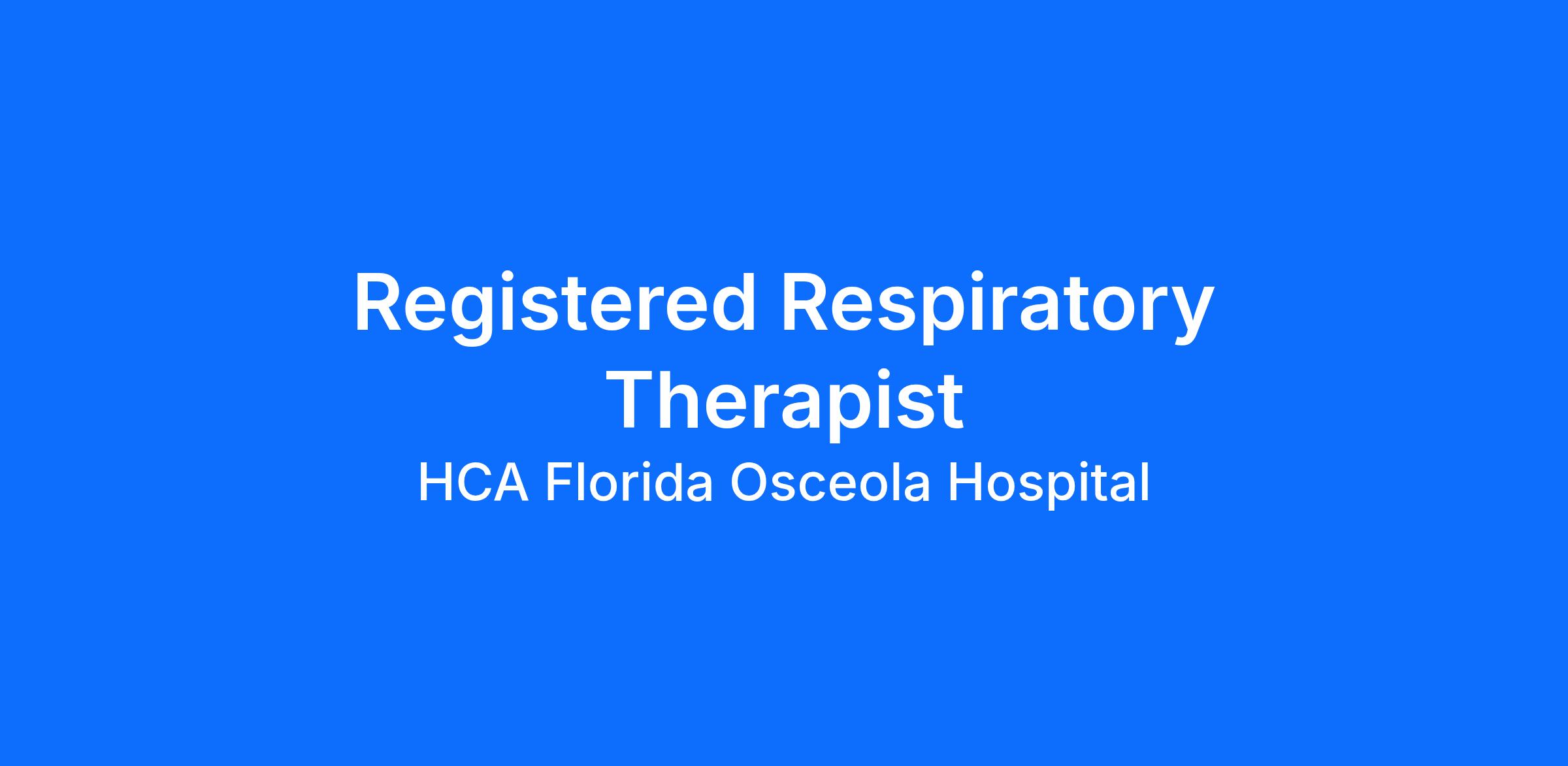 Experience the HCA Healthcare difference where colleagues are trusted, valued members of our healthcare team. Grow your career with an organization committed to delivering respectful, compassionate care, and where the unique and intrinsic worth of each individual is recognized. Submit your application for our Registered Respiratory Therapist opening with HCA Florida Osceola Hospital today and find out what it truly means to be a part of the HCA Healthcare team.