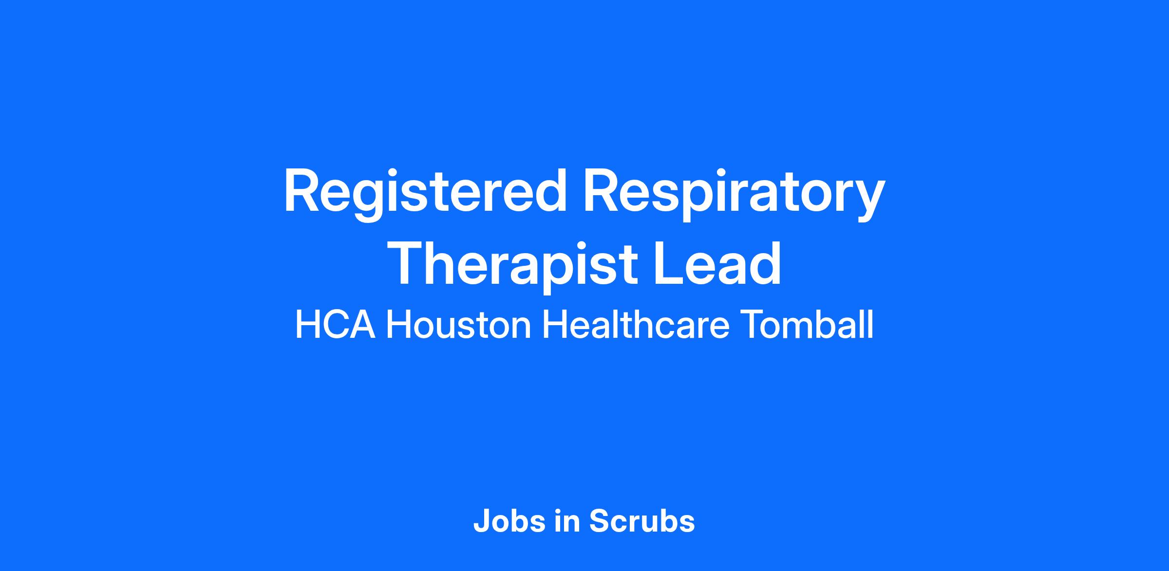 Experience the HCA Healthcare difference where colleagues are trusted, valued members of our healthcare team. Grow your career with an organization committed to delivering respectful, compassionate care, and where the unique and intrinsic worth of each individual is recognized. Submit your application for the opportunity below:Registered Respiratory Therapist LeadHCA Houston Healthcare Tomball