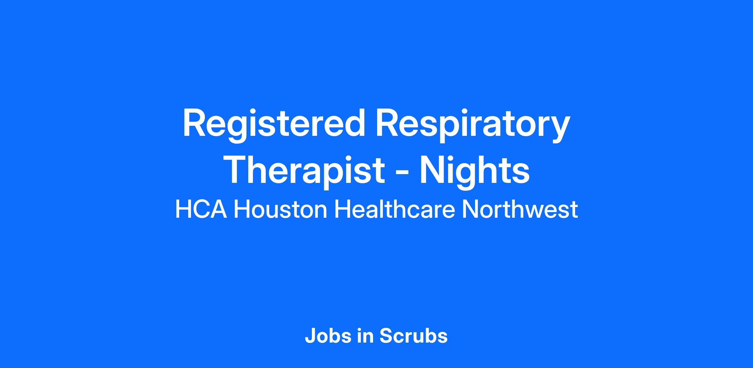 Experience the HCA Healthcare difference where colleagues are trusted, valued members of our healthcare team. Grow your career with an organization committed to delivering respectful, compassionate care, and where the unique and intrinsic worth of each individual is recognized. Submit your application for our RRT - Nights opening with HCA Houston Healthcare Northwest today and find out what it truly means to be a part of the HCA Healthcare team.