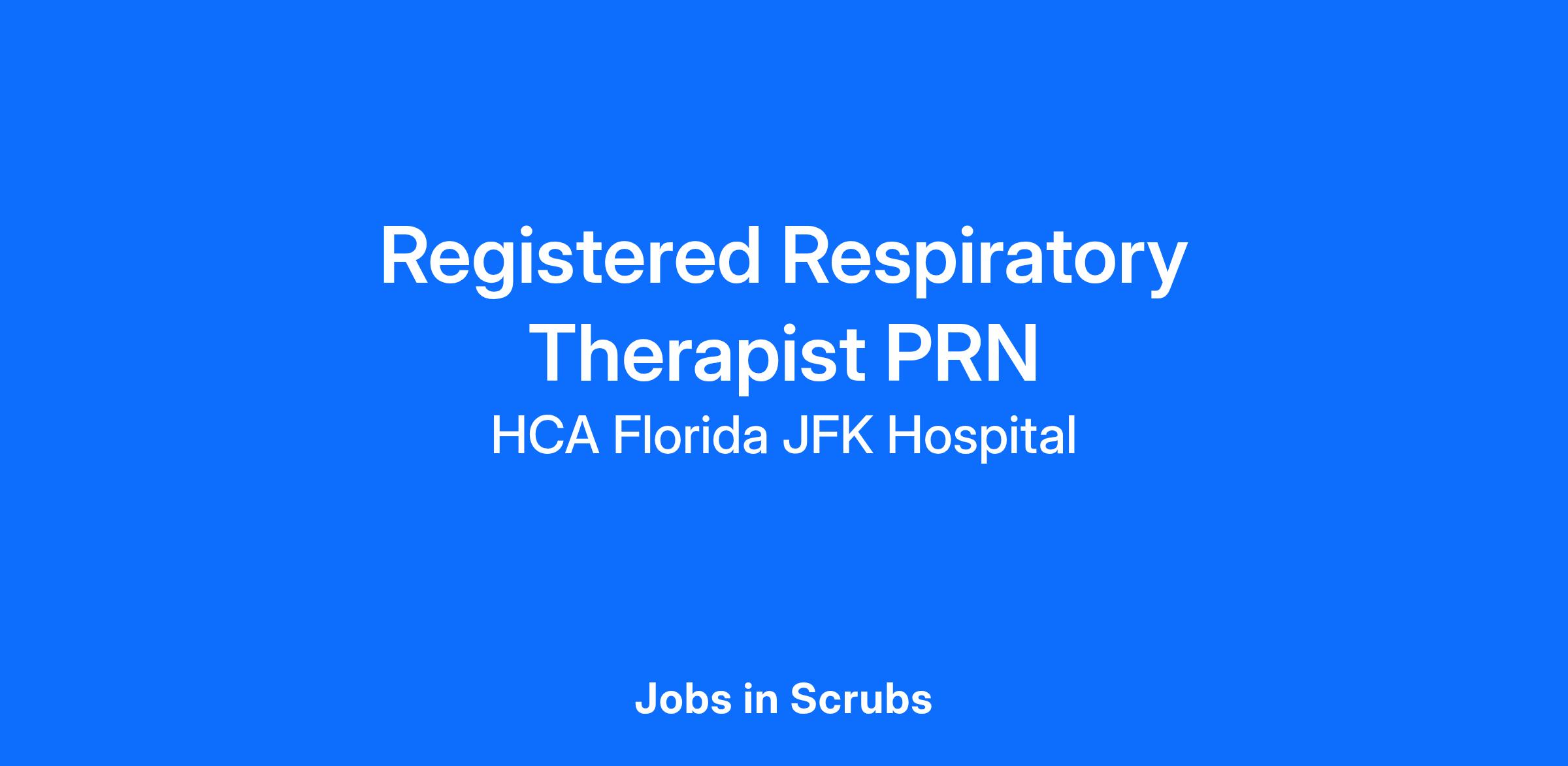 Do you want to join an organization that invests in you as a(an) Registered Respiratory Therapist PRN? At HCA Florida JFK Hospital, you come first. HCA Healthcare has committed up to $300 million in programs to support our incredible team members over the course of three years.