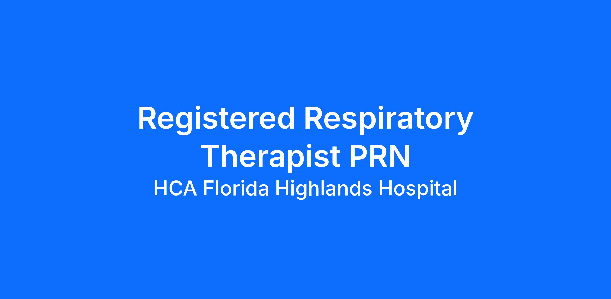 Do you have the career opportunities as a(an) Registered Respiratory Therapist PRN you want with your current employer? We have an exciting opportunity for you to join HCA Florida Highlands Hospital which is part of the nation's leading provider of healthcare services, HCA Healthcare.