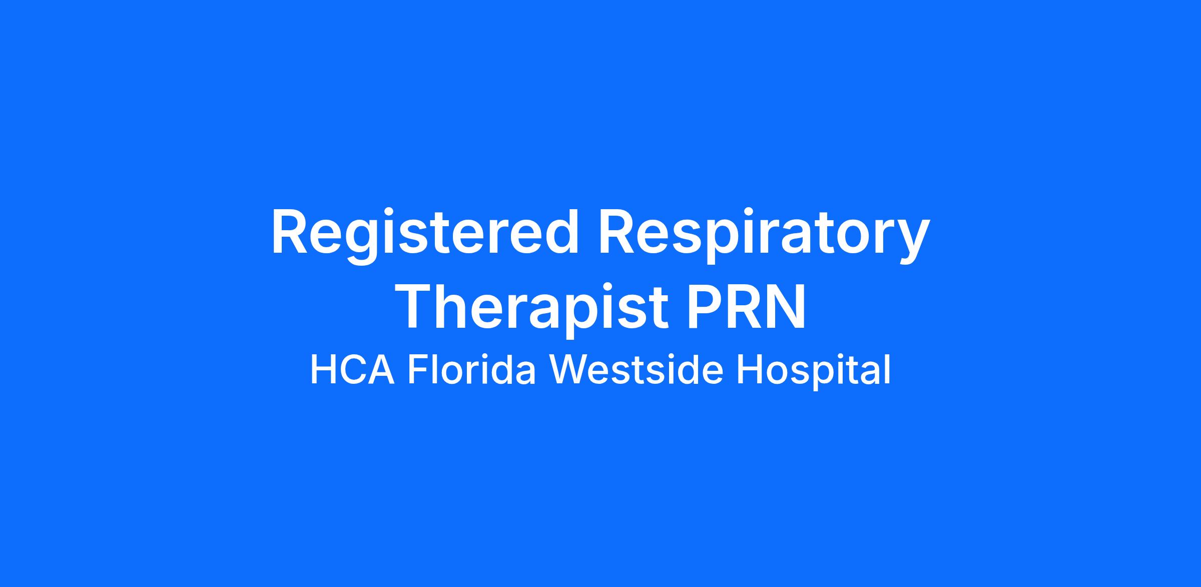 Last year our HCA Healthcare colleagues invested over 156,000 hours volunteering in our communities. As a(an) Registered Respiratory Therapist PRN with HCA Florida Westside Hospital you can be a part of an organization that is devoted to giving back!