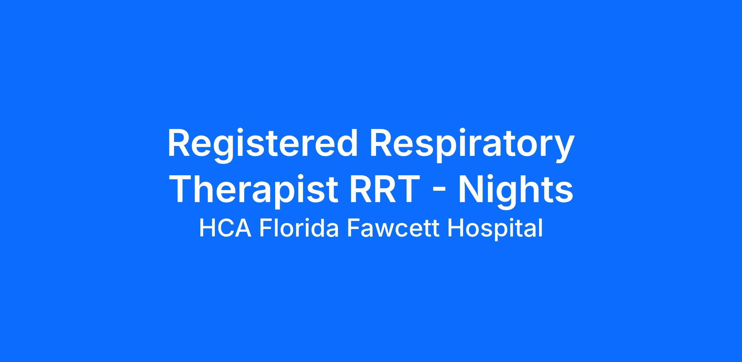 Do you have the career opportunities as a Registered Respiratory Therapist (RRT) you want with your current employer? We have an exciting opportunity for you to join HCA Florida Fawcett Hospital which is part of the nation's leading provider of healthcare services, HCA Healthcare.