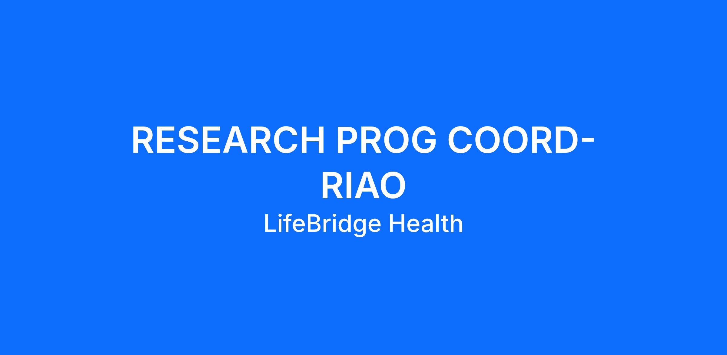 Under limited supervision, the Research Program Coordinator role coordinates the RIAO Research Program, including clinical trial regulatory affairs and clinical trial and research data coordination.