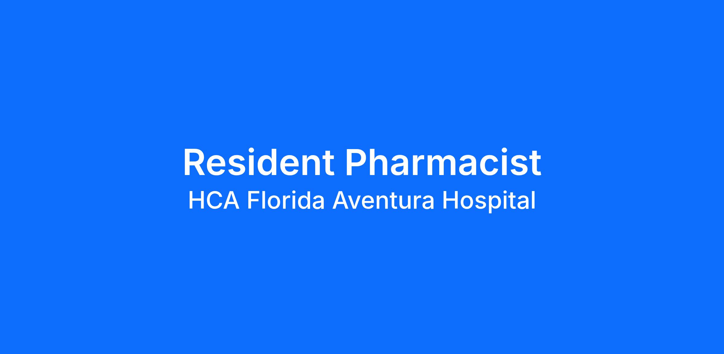 Do you want to join an organization that invests in you as a(an) Resident Pharmacist? At HCA Florida Aventura Hospital, you come first. HCA Healthcare has committed up to $300 million in programs to support our incredible team members over the course of three years.