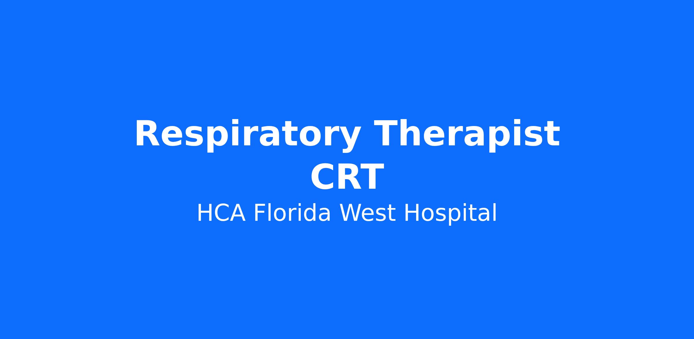 Do you want to join an organization that invests in you as a Respiratory Therapist CRT? At HCA Florida West Hospital, you come first. HCA Healthcare has committed up to $300 million in programs to support our incredible team members over the course of three years.