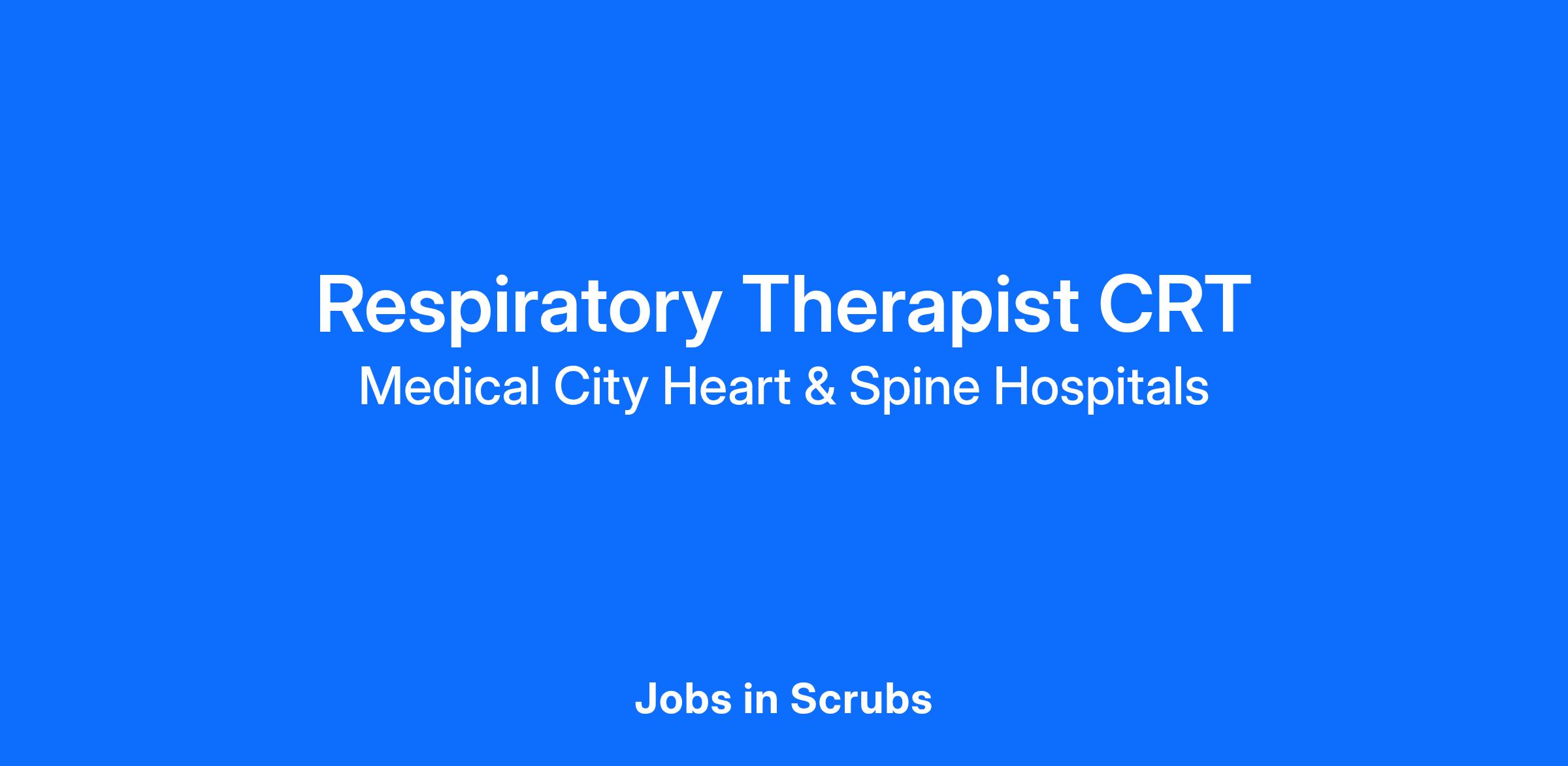 Do you want to join an organization that invests in you as a(an) Respiratory Therapist CRT? At Medical City Heart & Spine Hospitals, you come first. HCA Healthcare has committed up to $300 million in programs to support our incredible team members over the course of three years.