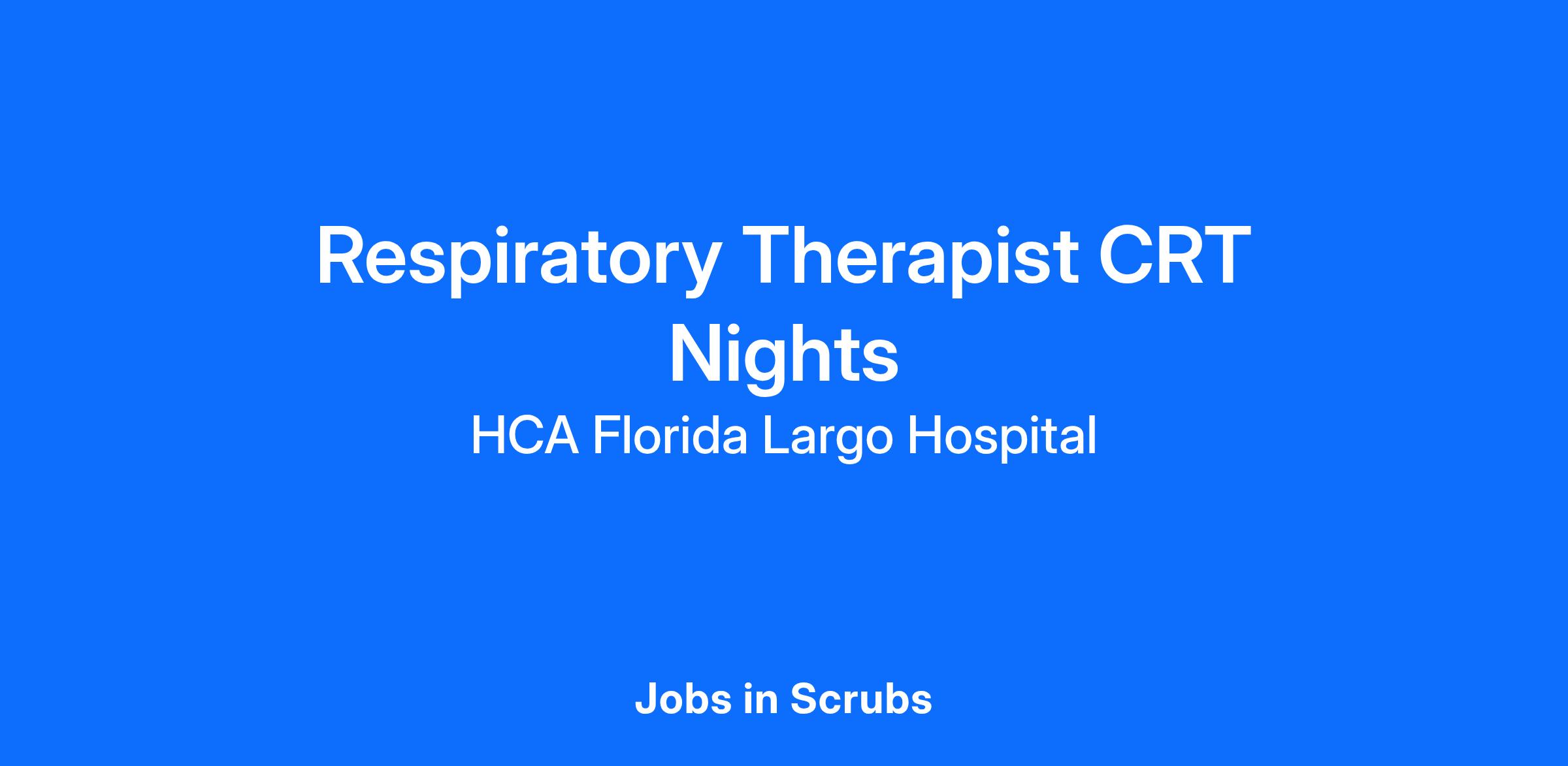 Do you currently have an opportunity to make a real impact with your work? With over 2,000 sites of care and serving over 31.2 million patient interactions every year, nurses at HCA Florida Largo Hospital have the opportunity to make a real impact. As a(an) Respiratory Therapist CRTNight Shift you can be a part of change.
