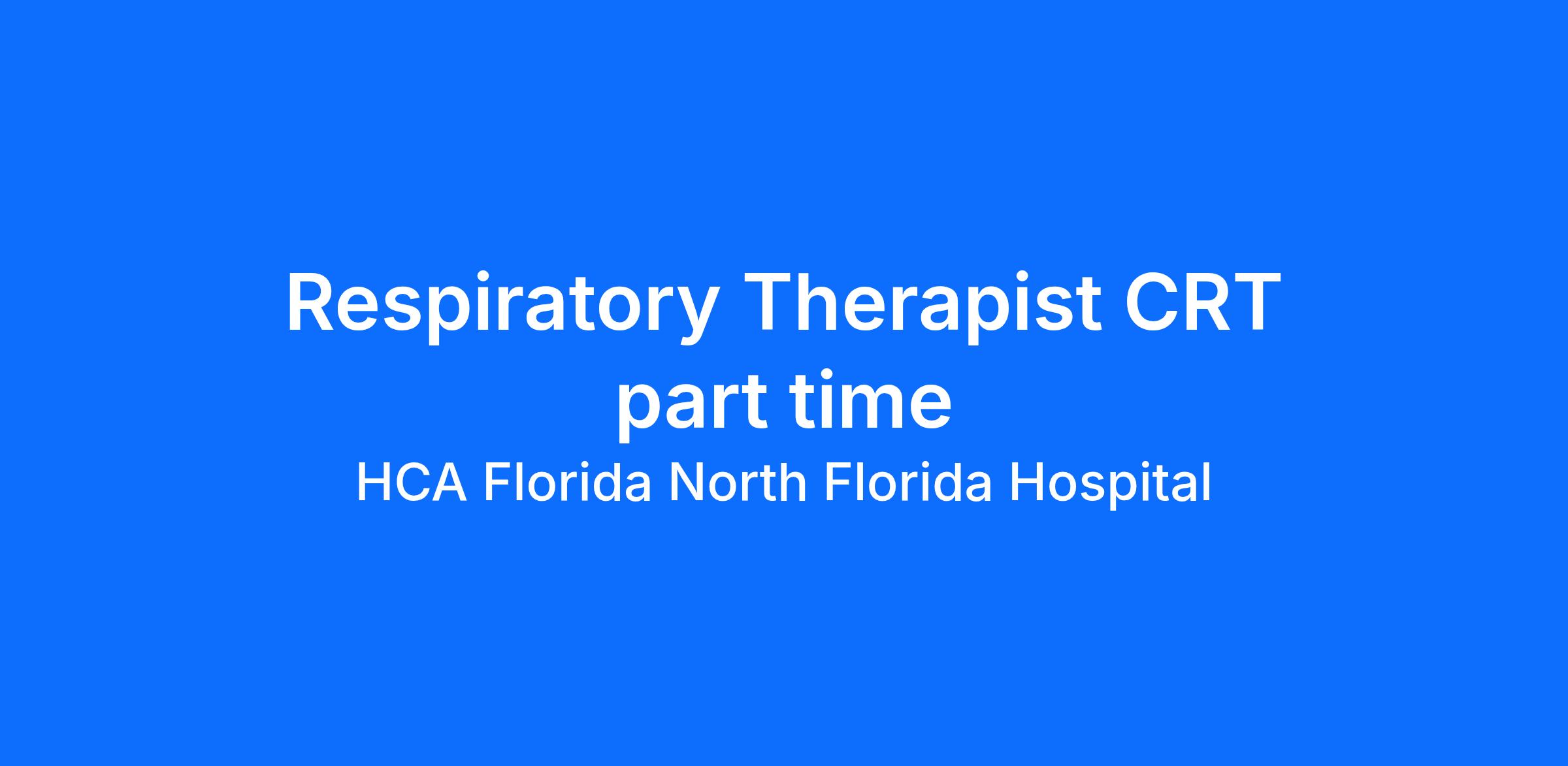 Do you have the career opportunities as a Respiratory Therapist CRT part time you want with your current employer? We have an exciting opportunity for you to join HCA Florida North Florida Hospital which is part of the nation's leading provider of healthcare services, HCA Healthcare.