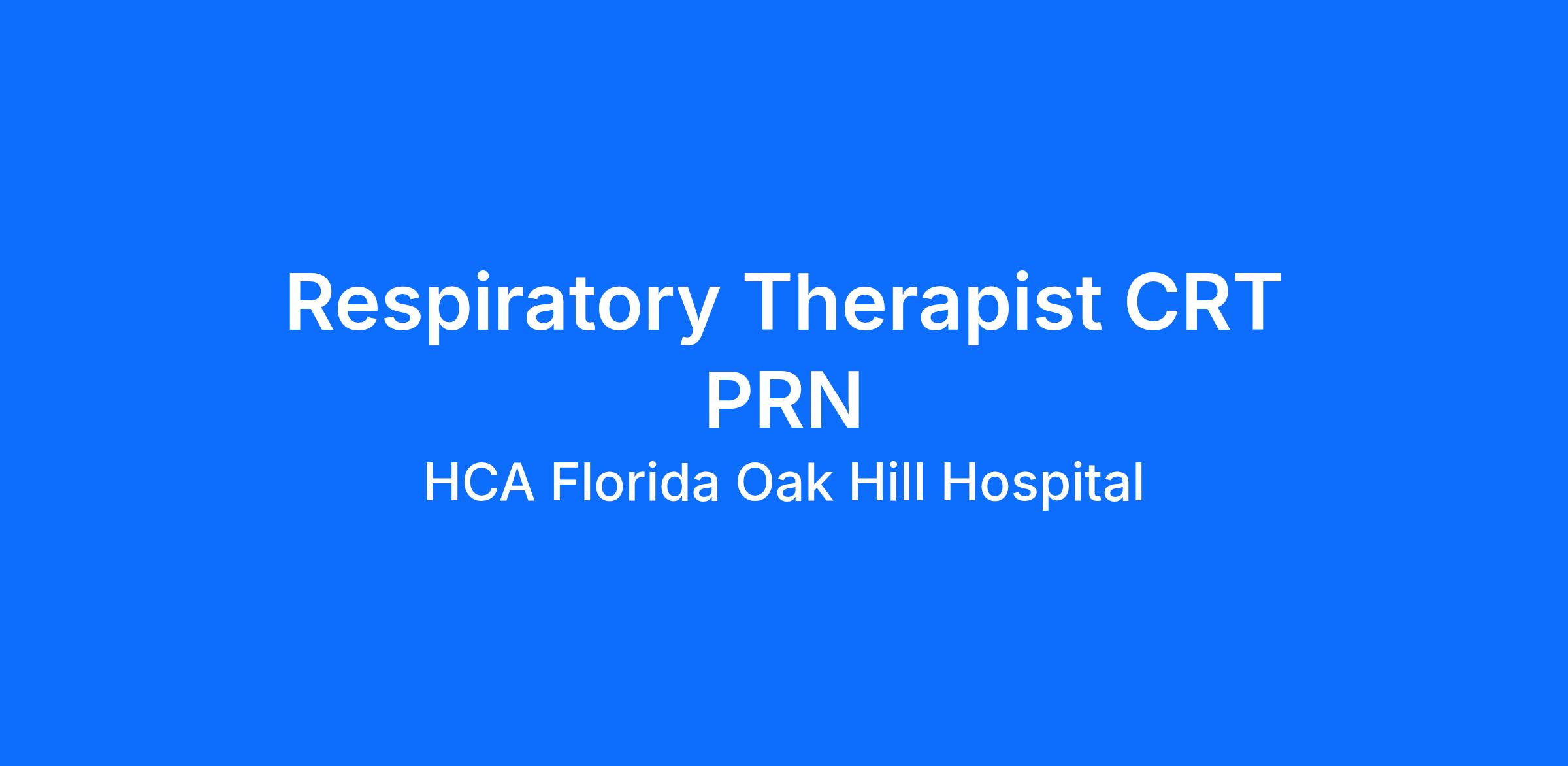 Do you have the PRN career opportunities as a(an) Respiratory Therapist CRT PRN you want with your current employer? We have an exciting opportunity for you to join HCA Florida Oak Hill Hospital which is part of the nation's leading provider of healthcare services, HCA Healthcare.