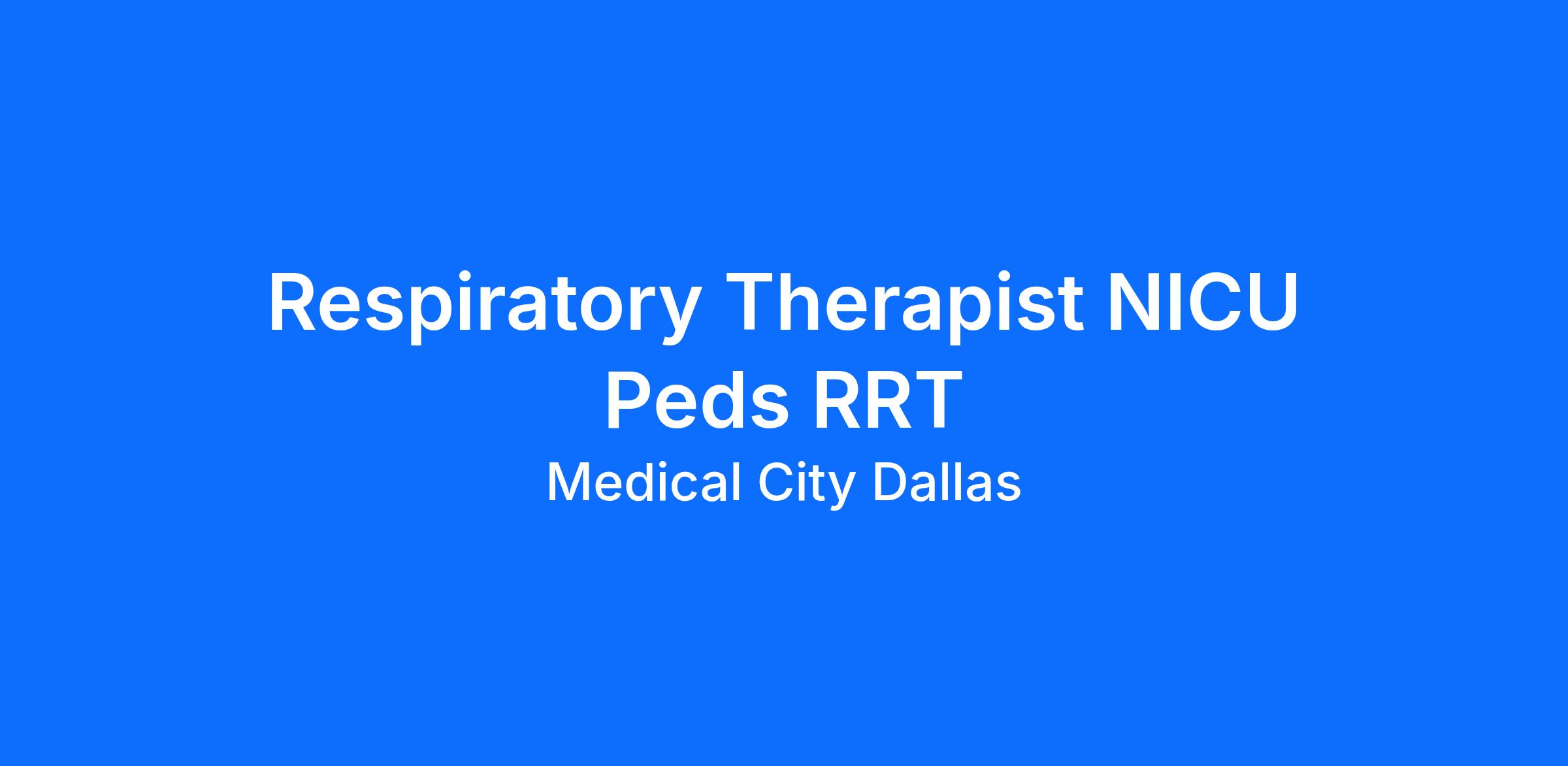 Are you passionate about the patient experience? At HCA Healthcare, we are committed to caring for patients with purpose and integrity. We care like family! Jump-start your career as a(an) Respiratory Therapist NICU Peds RRT today with Medical City Dallas.