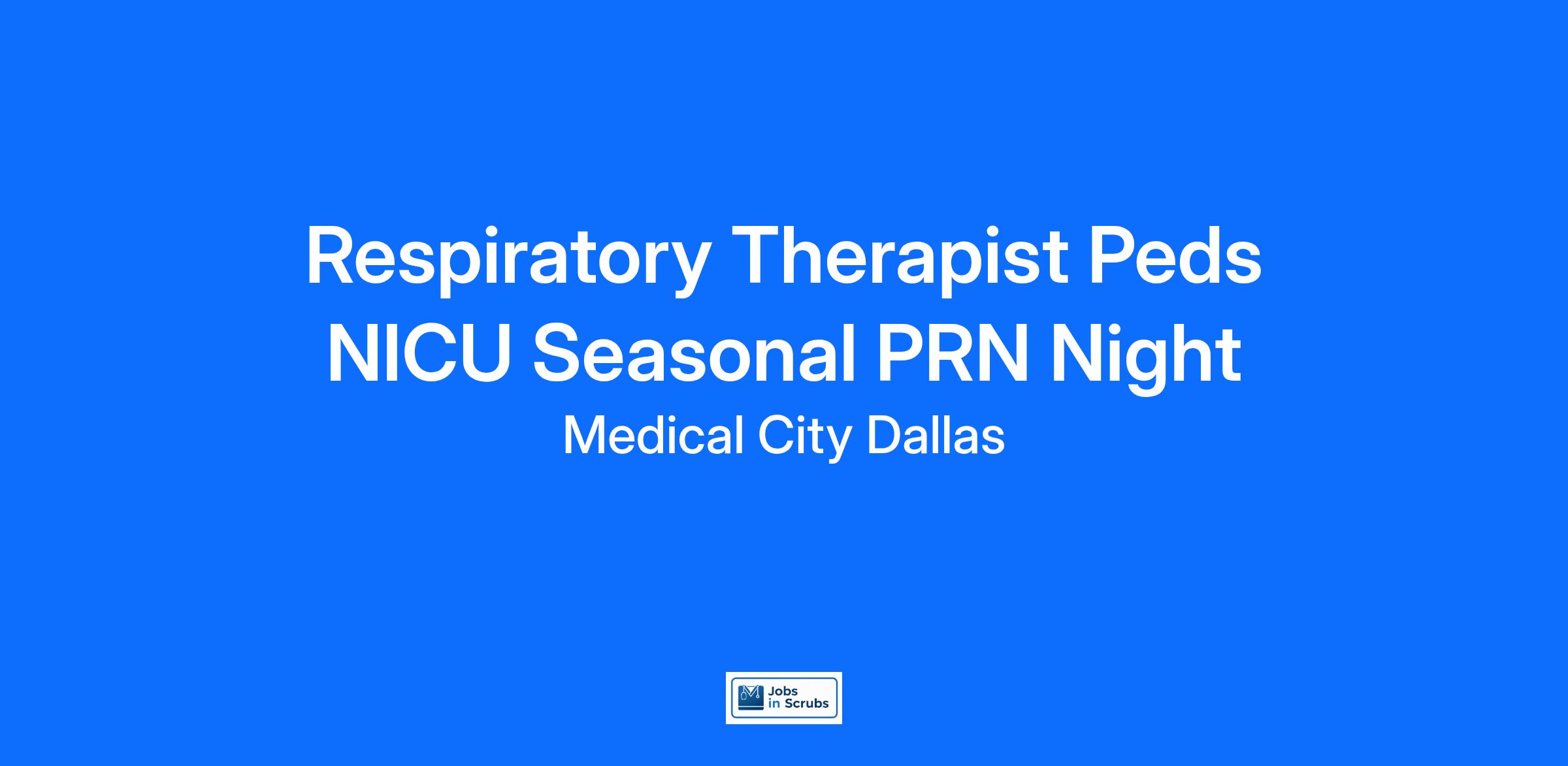 Are you passionate about the patient experience? At HCA Healthcare, we are committed to caring for patients with purpose and integrity. We care like family! Jump-start your career as a(an) Respiratory Therapist Peds NICU Seasonal PRN today with Medical City Dallas.