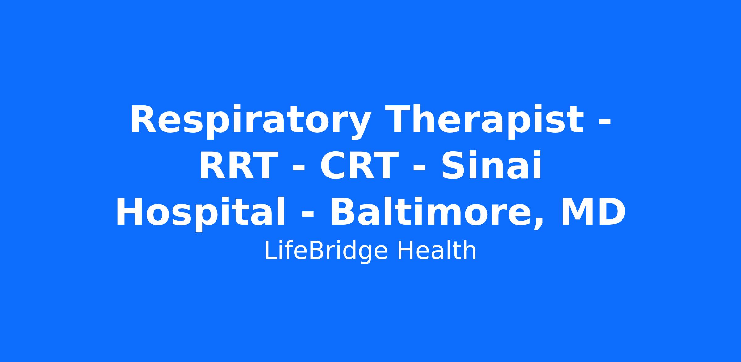 Respiratory Therapist - RRT - CRT - Sinai Hospital - Baltimore, MD