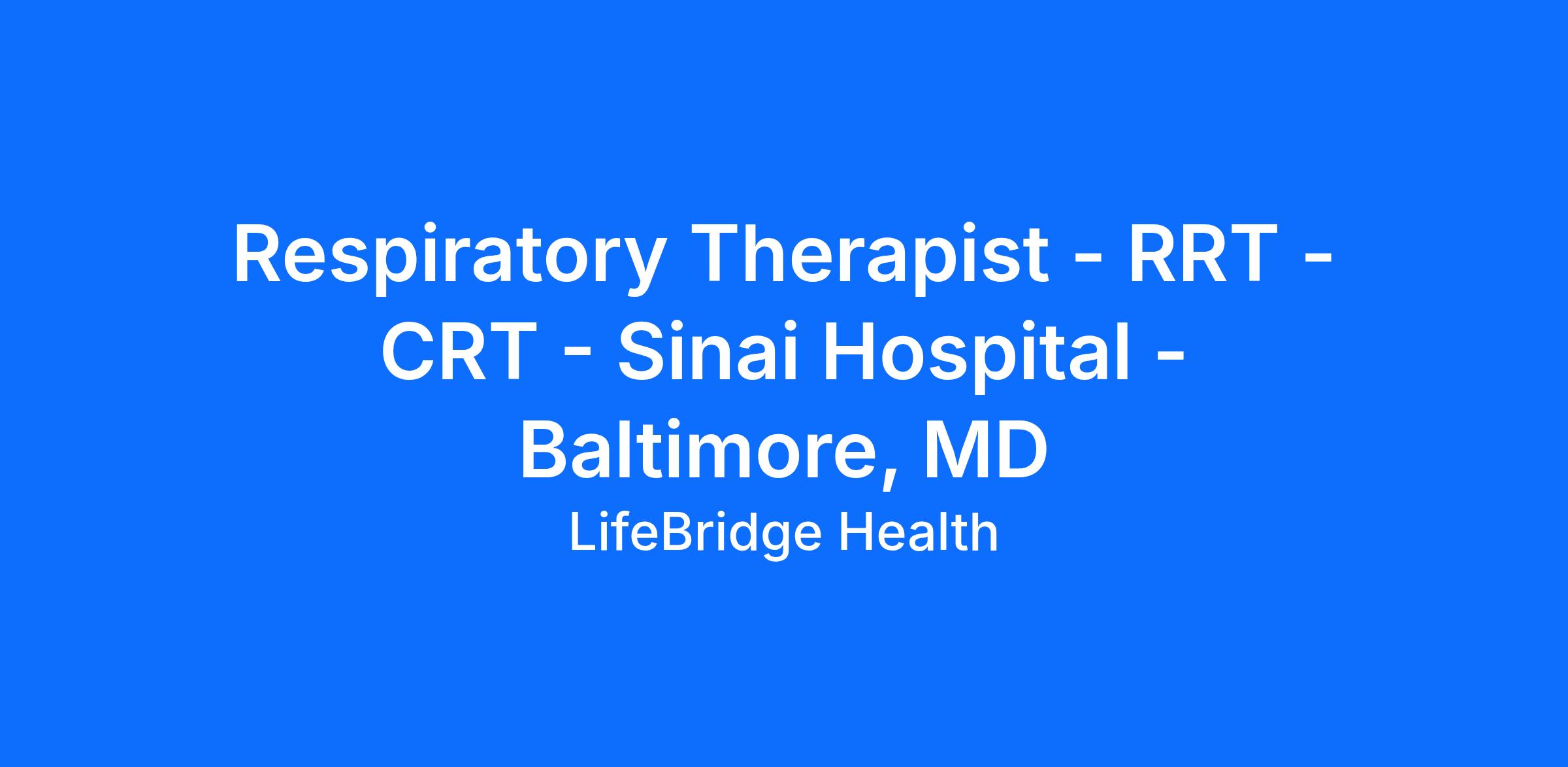 Respiratory Therapist - RRT - CRT - Sinai Hospital - Baltimore, MD