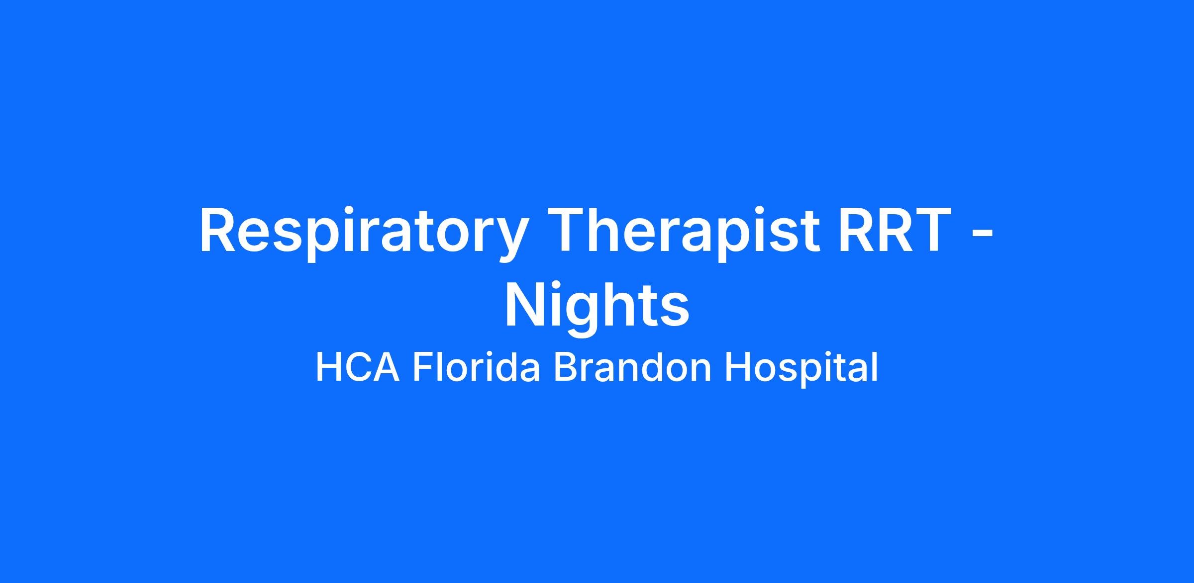 Do you want to join an organization that invests in you as a(an) Respiratory Therapist RRT - Nights? At HCA Florida Brandon Hospital, you come first. HCA Healthcare has committed up to $300 million in programs to support our incredible team members over the course of three years.